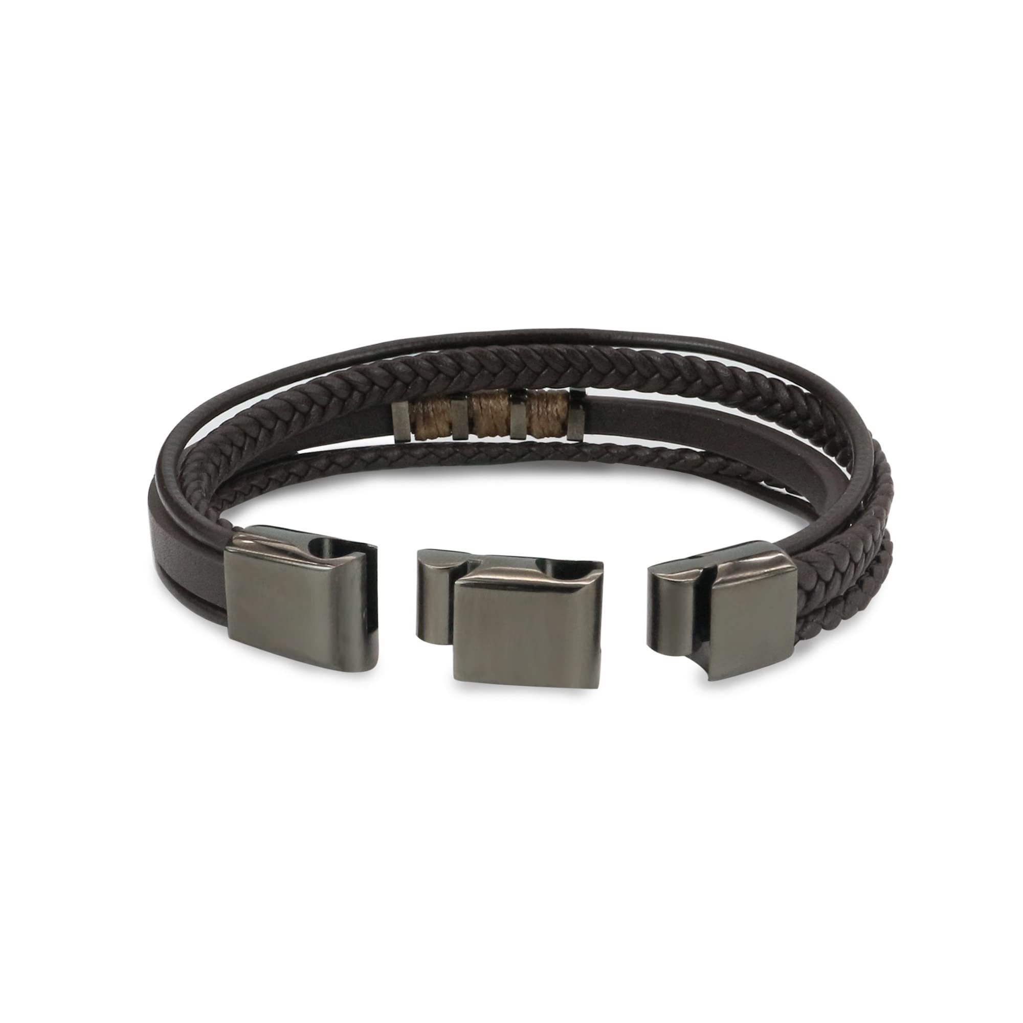 Fynch-Hatton Layering skórzana bransoletka, 19 cm, Stal nierdzewna, br