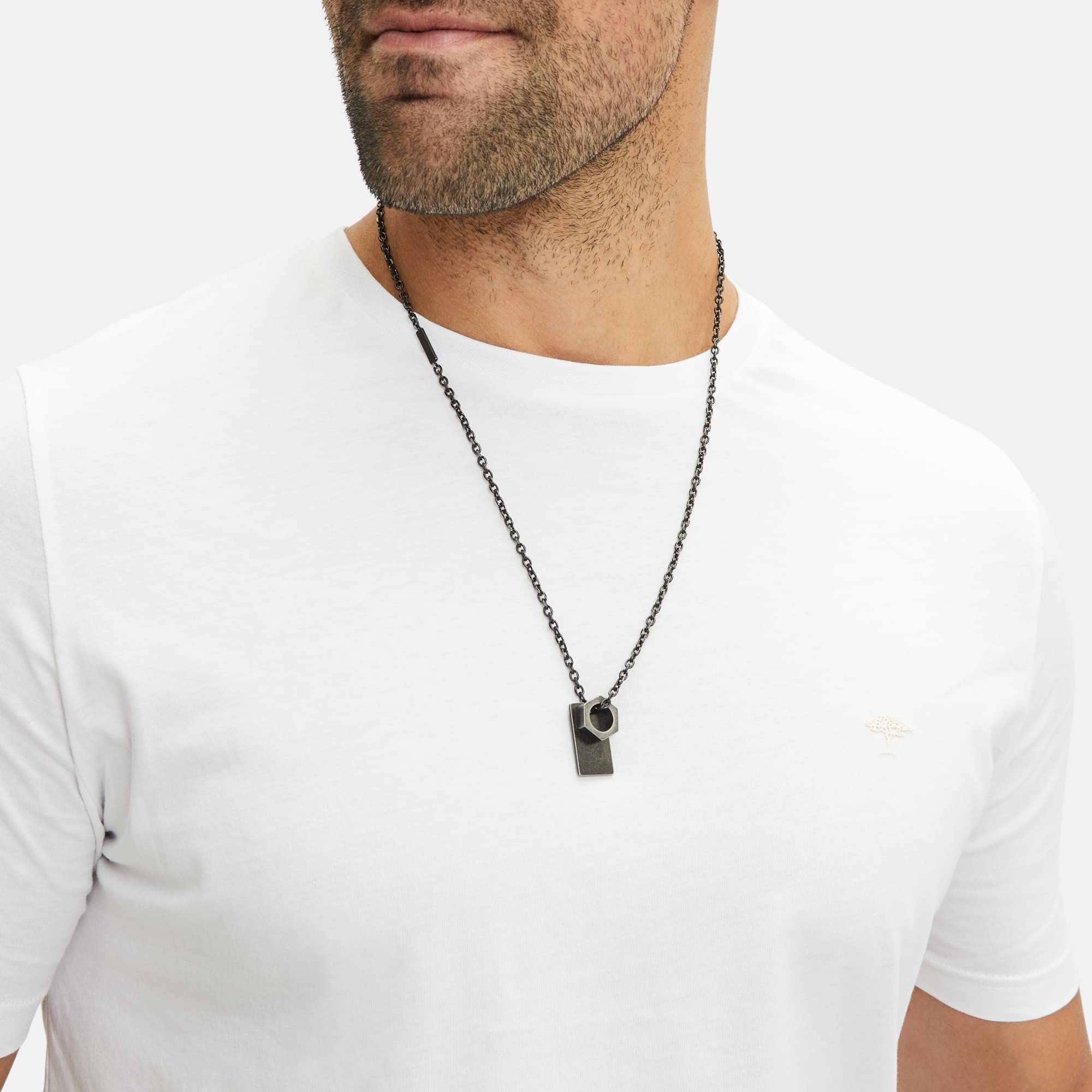 Fynch-Hatton Naszyjnik z zawieszką (płytka i pierścień sześciokątny), 65, Stal nierdzewna, Bez kamieni szlachetnych