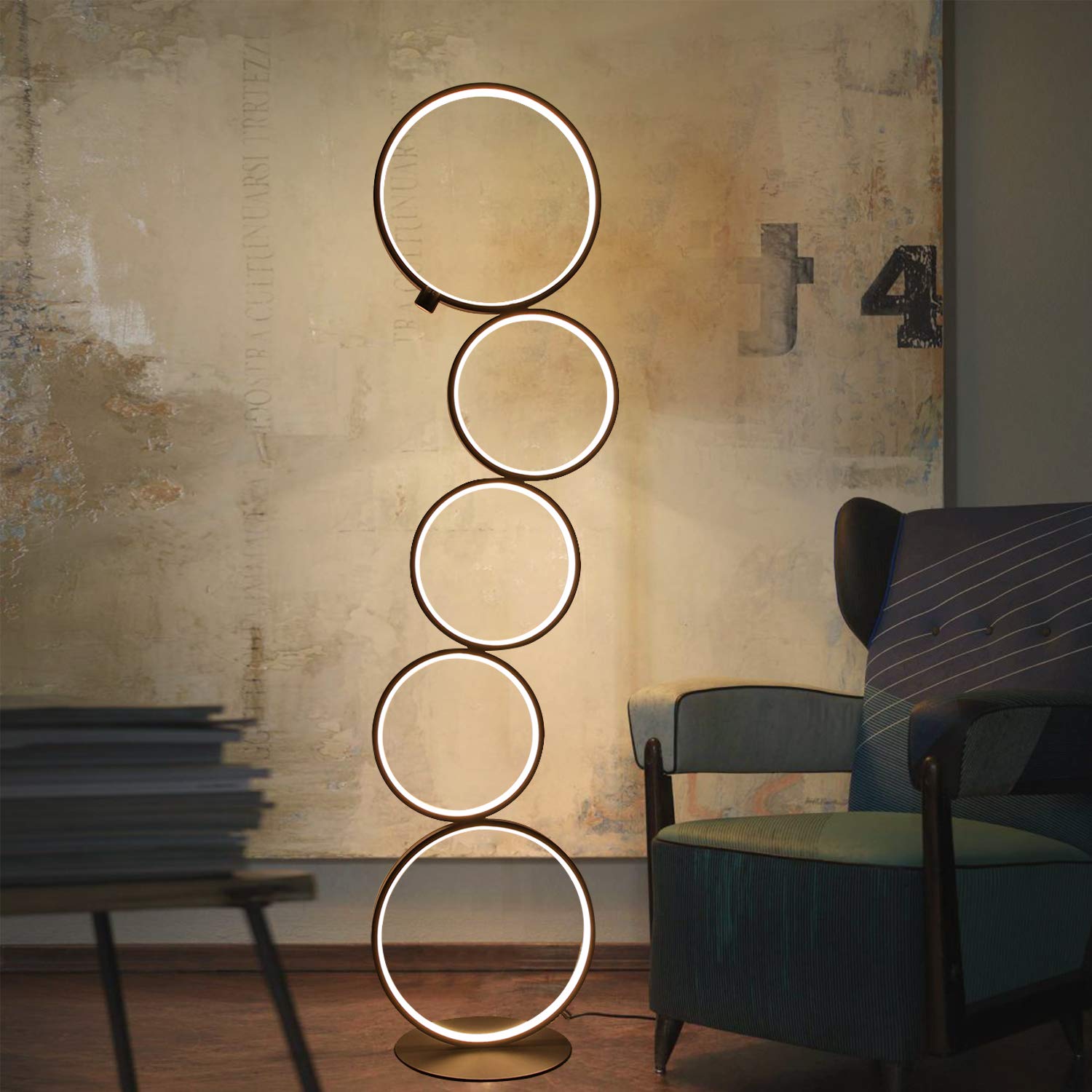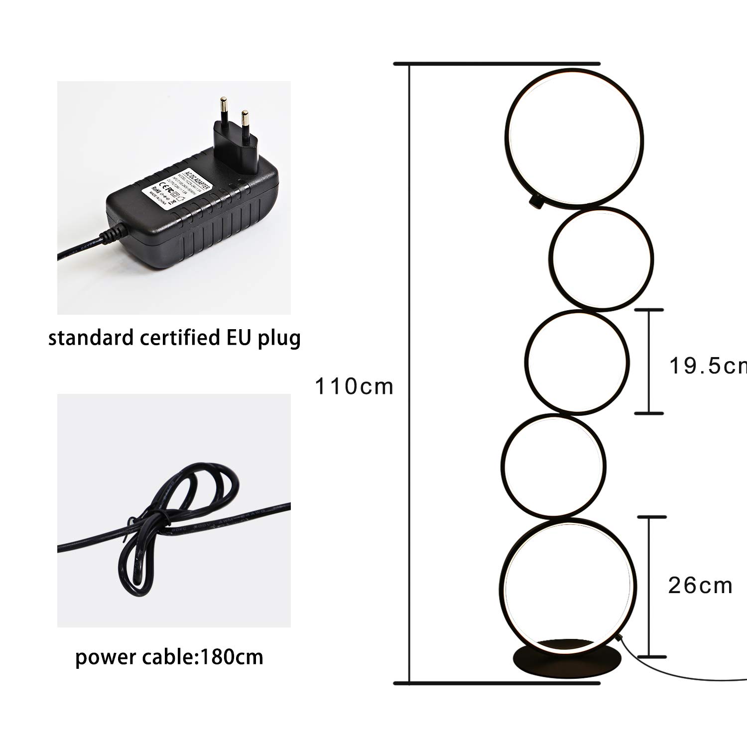 ✅ ●Nowoczesny i elegancki: ●Nowoczesny i elegancki design: pięć aluminiowych pierścieni jest sprytnie splecionych ze sobą, tworząc przejrzystą, harmonijną lampę podłogową, tworząc pewną asymetrię i indywidualizując wygląd, co skutkuje atrakcyjnym wyglądem pasującym do każdego stylu życia