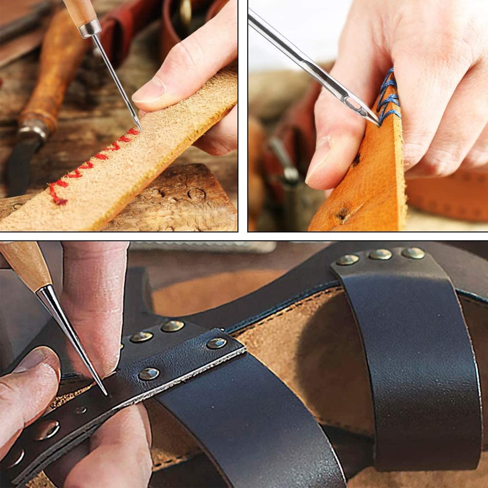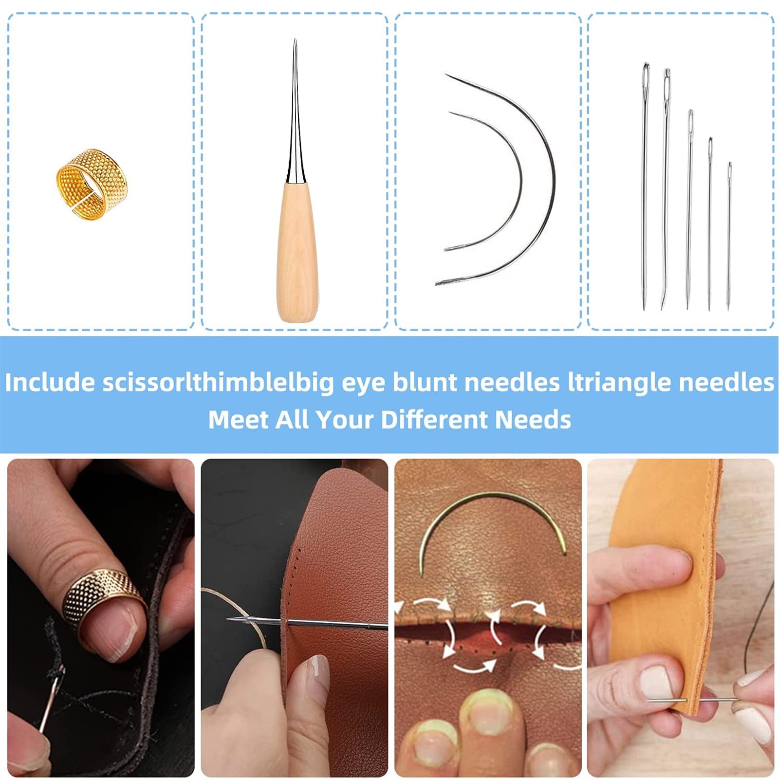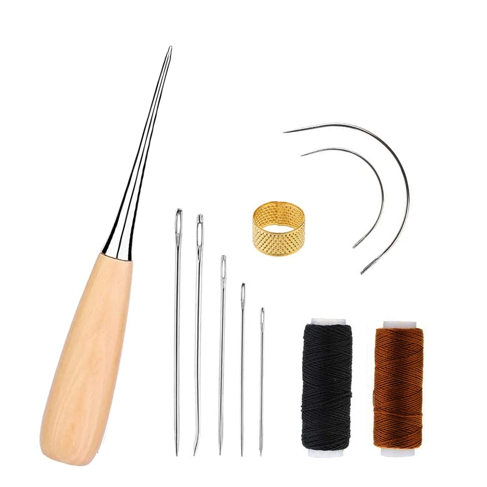 W skład zestawu wchodzi 11 różnych narzędzi, w tym szydło, woskowana nić, igły do szycia ręcznego oraz naparstek do naprawy tapicerki skórzanej. Dzięki temu będziesz miał wszystko, czego potrzebujesz, aby zacząć tworzyć piękne i trwałe projekty ze skóry.