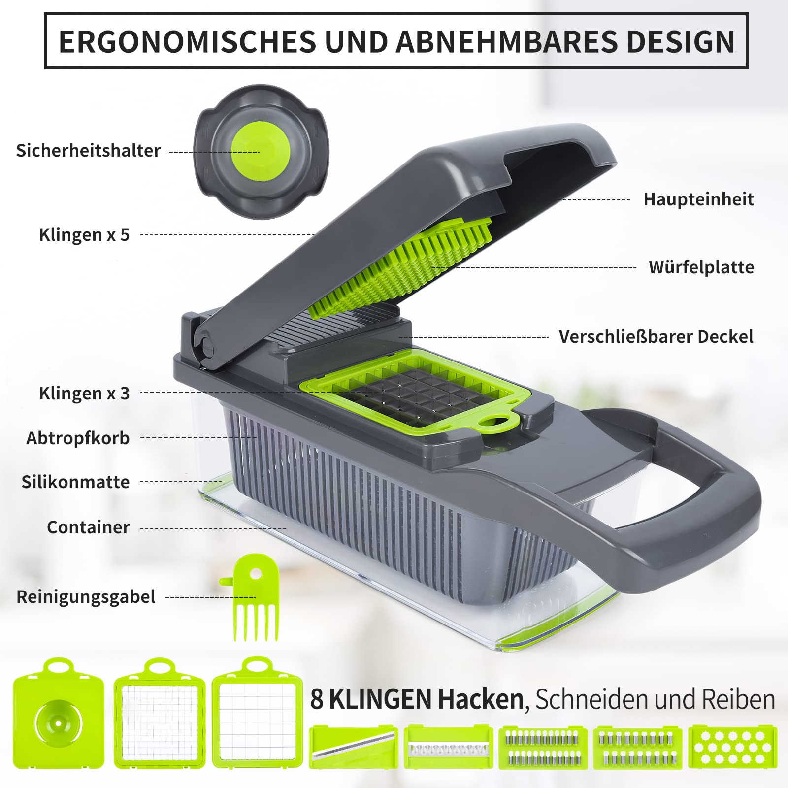 Główne cechy tego produktu to solidna konstrukcja, ostre ostrza oraz łatwość obsługi. Dzięki ergonomicznemu uchwytowi i antypoślizgowej podstawce, korzystanie z tej szatkownicy jest bezpieczne i wygodne. Dodatkowo, można ją łatwo zdemontować i umyć, co sprawia, że utrzymanie jej w czystości jest proste.