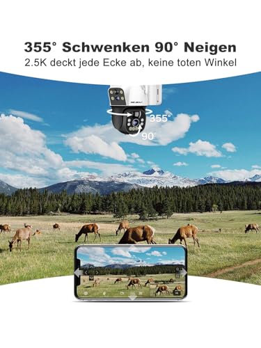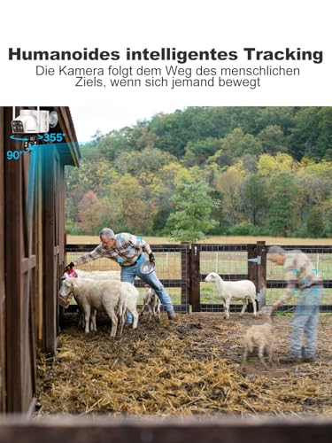 🌞[Dwa obiektywy i: 🌞[Dwa obiektywy i podwójny ekra] IP Zewnętrzna kamera 4g jest wyposażona w podwójny obiektyw, który zapewnia szeroki zasięg i brak martwych punktów. Górna kamera typu bullet jest zamocowana w jednym miejscu, aby zapewnić szerokokątną ochronę. Kamera kopułkowa PT może obracać się o 355°/90°. Dzięki