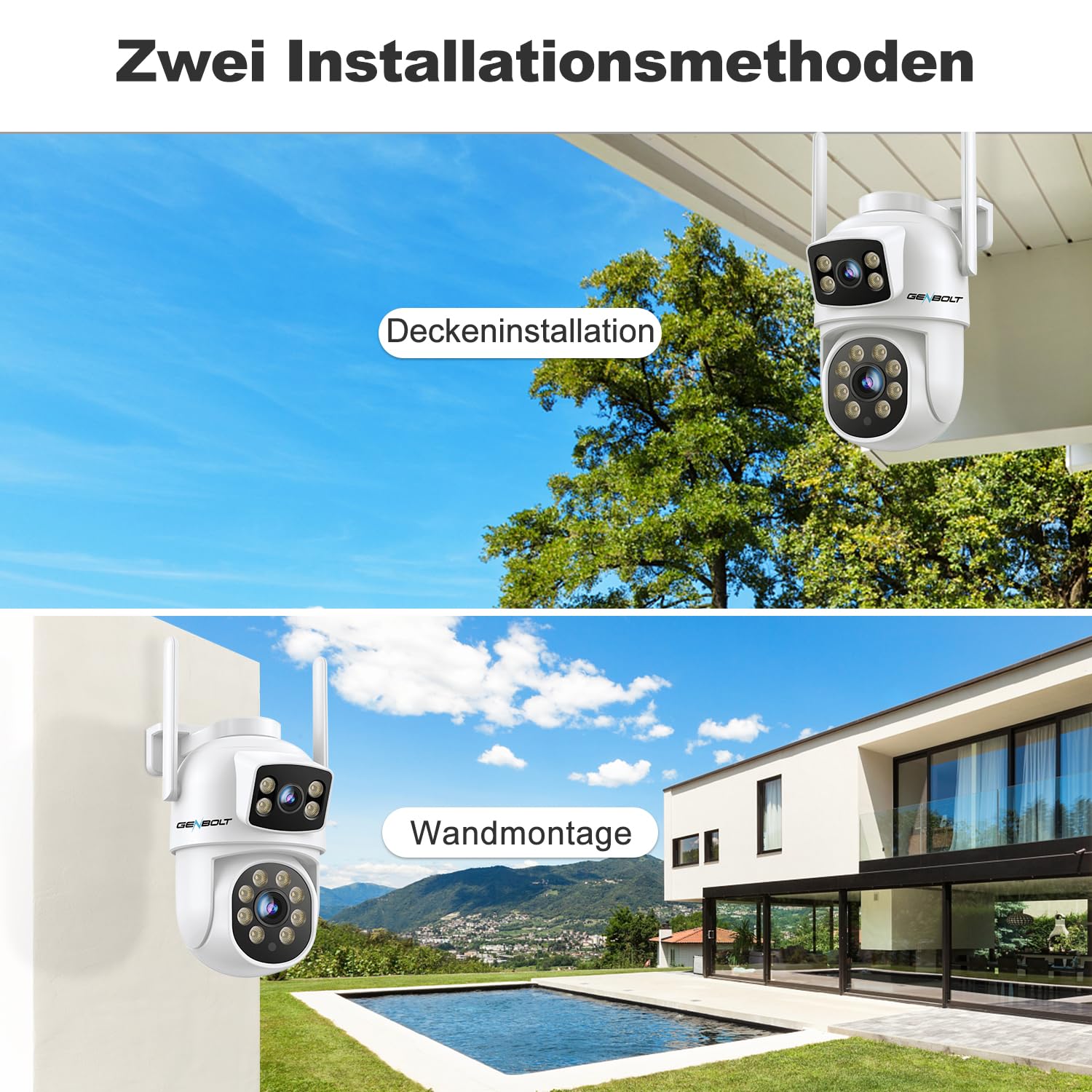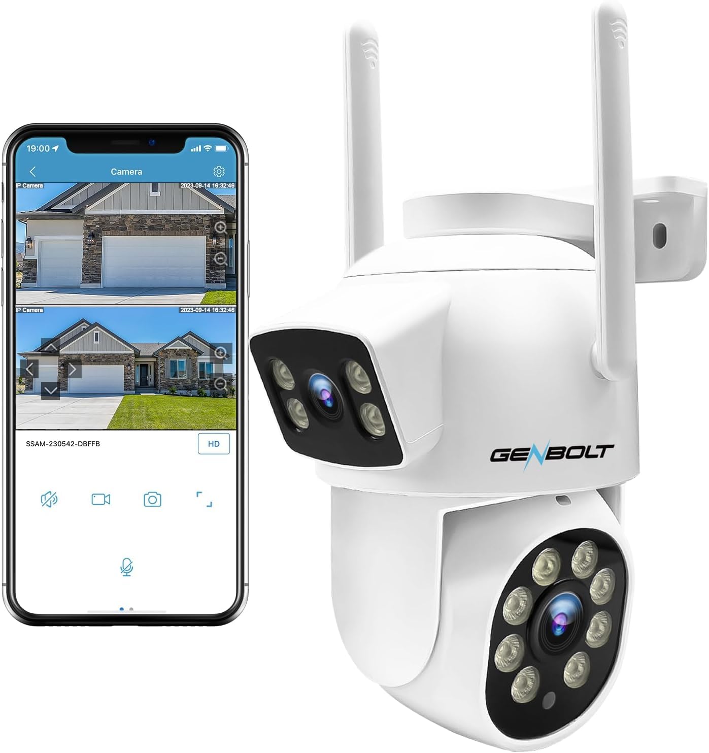 GENBOLT PTZ Kamera Zewnętrzna WiFi 2.4&5GHz, CCTV Monitoringu PoE Kamera IP Zewnętrzna z Kolorowe widzenie nocne, Wykrywanie Humanoidów, Automatyczne śledzenie [Podwójny Ekran]