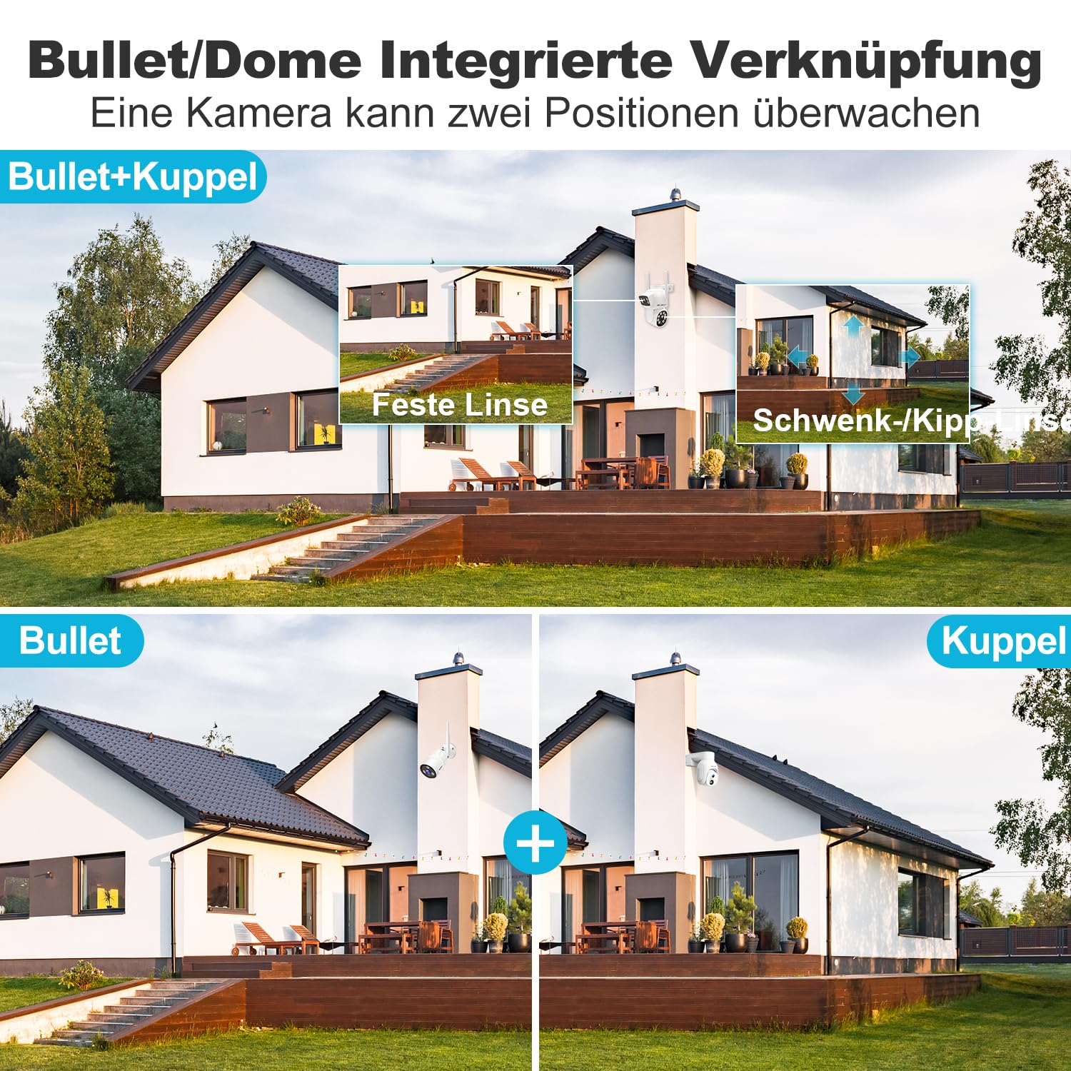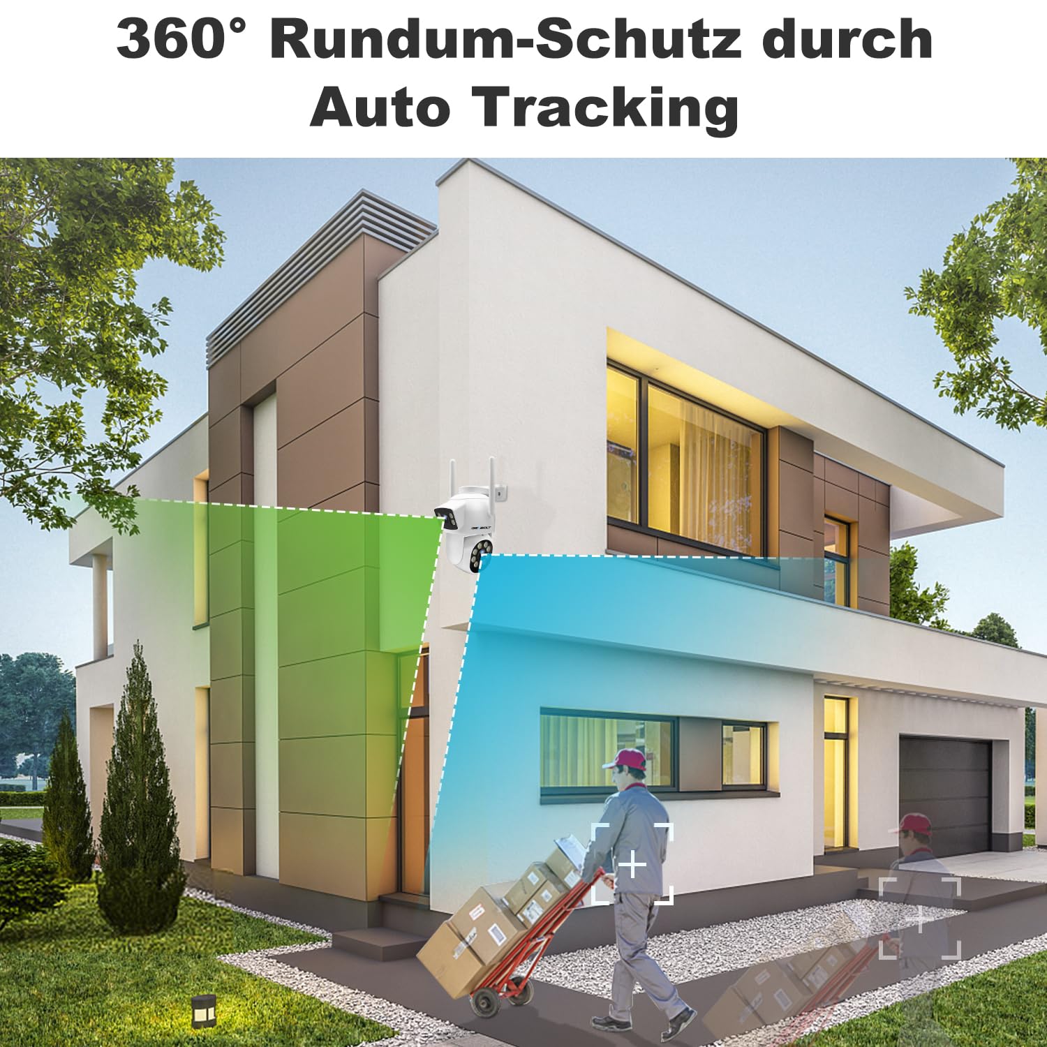✅ 🌞[Podwójny obiektyw i: 🌞[Podwójny obiektyw i Podwójny ekran] Zewnętrzna kamera WIFI CCTV przyjmuje konstrukcję dwóch obiektywów, z kompleksowym zasięgiem, brakiem martwych punktów, 4X Cyfrowym Zoomem i łatwym oglądaniem. Górna kamera kuli jest zamocowana w jednej pozycji, aby zapewnić obronę szerokokątną. Kamera dolnej p