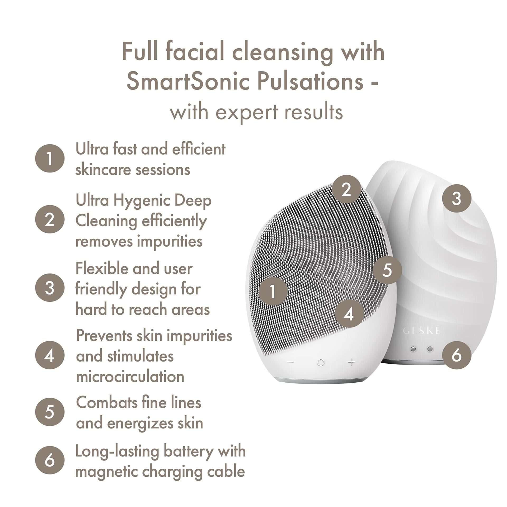 GESKE | Szczoteczka do twarzy SmartAppGuided™ 5 w 1 | Elektryczna Szczotka do oczyszczania twarzy | Miękka silikonowa szczoteczka | Profesjonalne oczyszczanie twarzy | masażer do twarzy