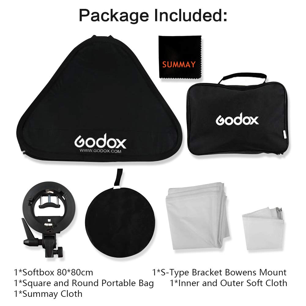 Godox Składany uniwersalny softbox 80 x 80 cm z uchwytem błyskowym S do regulacji ustawienia akcesoriów montażowych Flash Bowens (SFUV8080)
