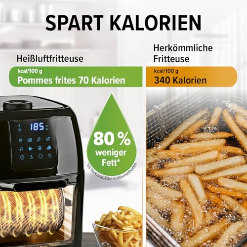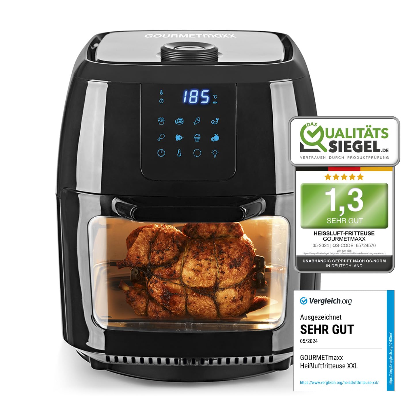 Frytkownica na gorące powietrze Gourmetmaxx 1800 W 9 litrów to prawdziwy skarb dla każdej kuchni. Dzięki zaawansowanej technologii, wielofunkcyjności i dbałości o bezpieczeństwo, staje się niezastąpionym narzędziem w codziennym gotowaniu. Niezależnie od tego, czy chcesz przygotować frytki, mięso czy warzywa, to urządzenie sprosta każdemu kulinarnemu wyzwaniu. Zainwestuj w zdrowe i smaczne gotowanie, wybierając frytkownicę Gourmetmaxx – twój klucz do kulinarnych sukcesów!