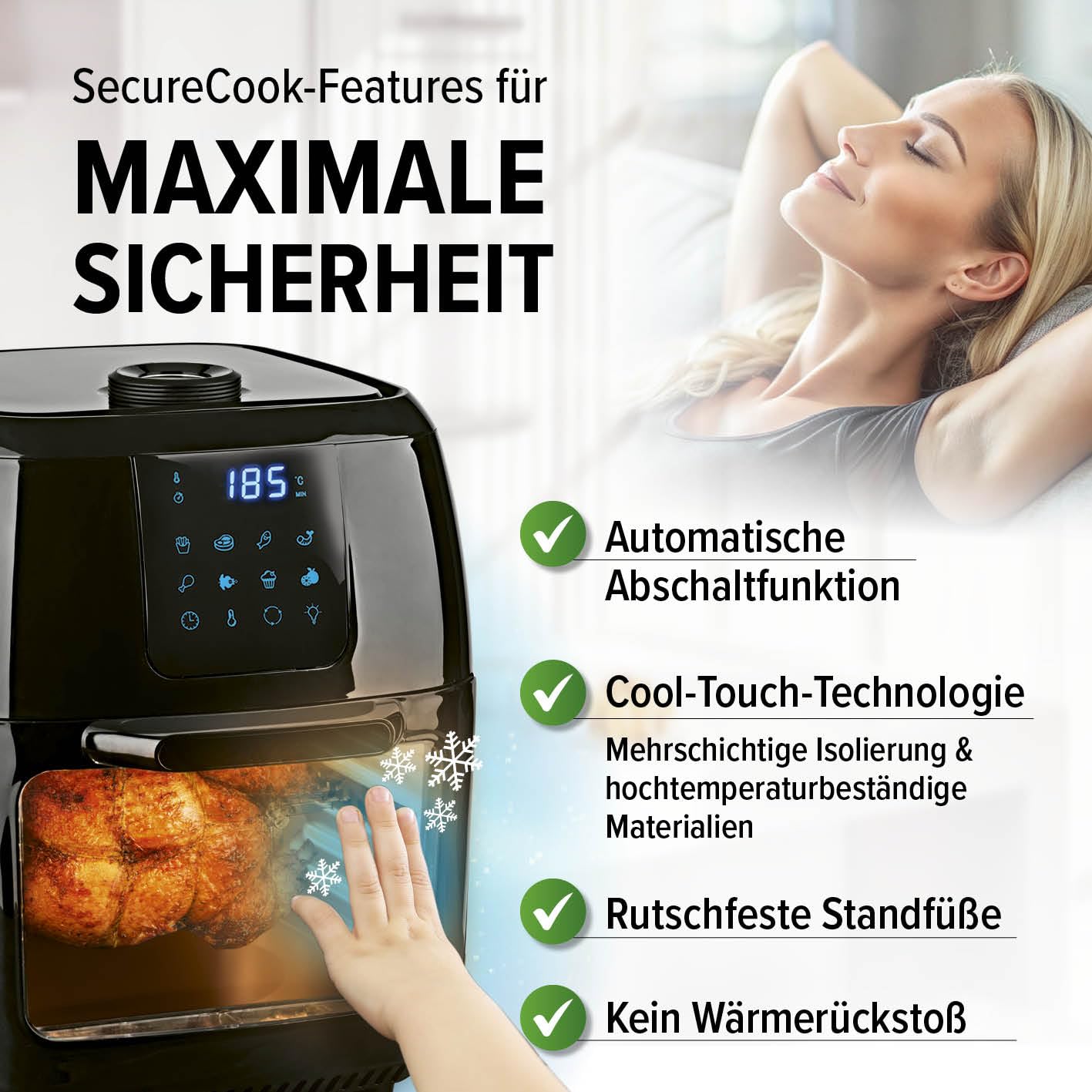 Frytkownica Gourmetmaxx oferuje nowoczesną technologie 360°-Rapid-Air, która zapewnia optymalną dystrybucję ciepła wewnątrz urządzenia. Dzięki temu Twoje potrawy będą równomiernie przyrządzone – z zewnątrz chrupiące, a w środku soczyste. To idealne rozwiązanie dla osób dbających o zdrową dietę, które chcą zminimalizować ilość tłuszczu w swojej diecie bez rezygnowania z ulubionych smaków.