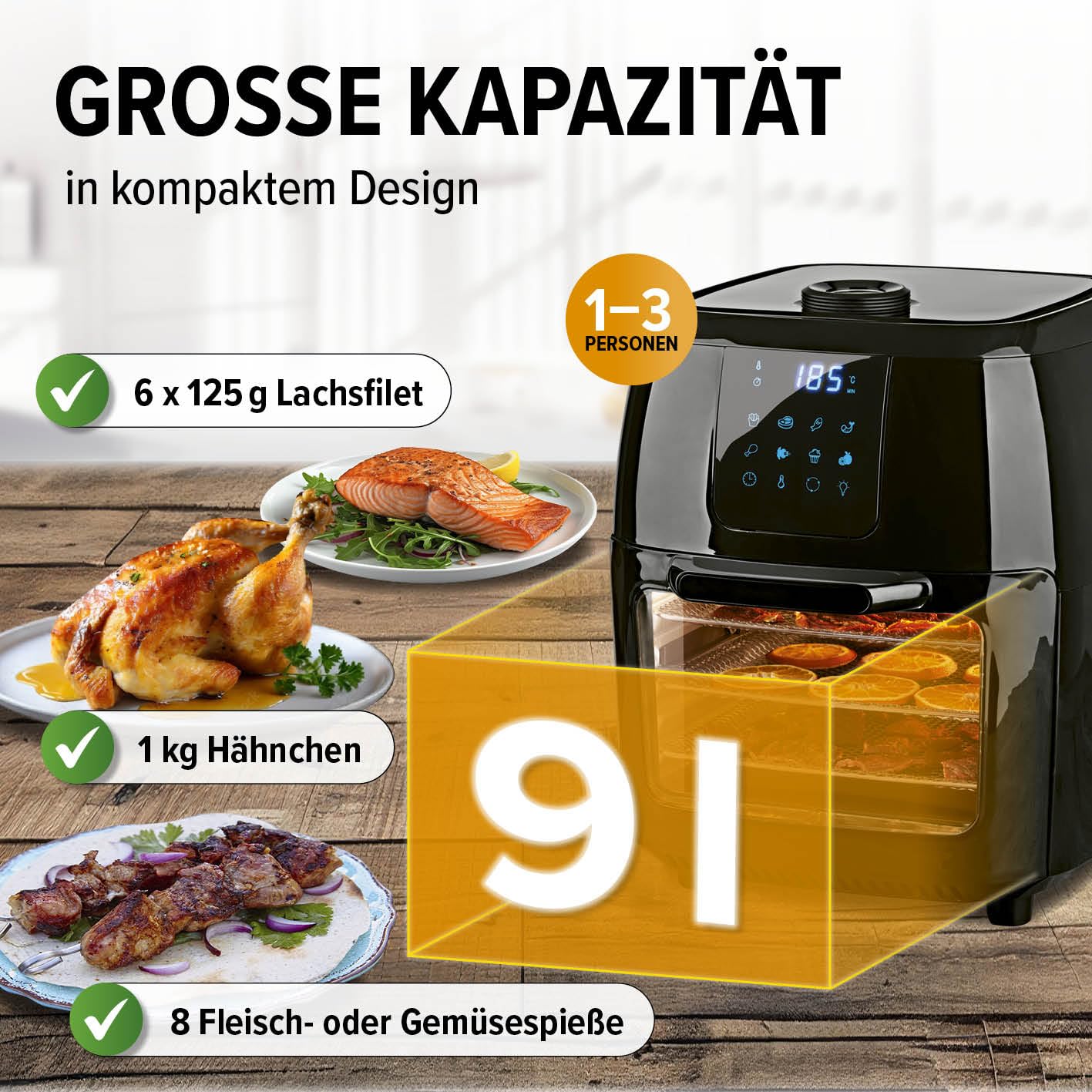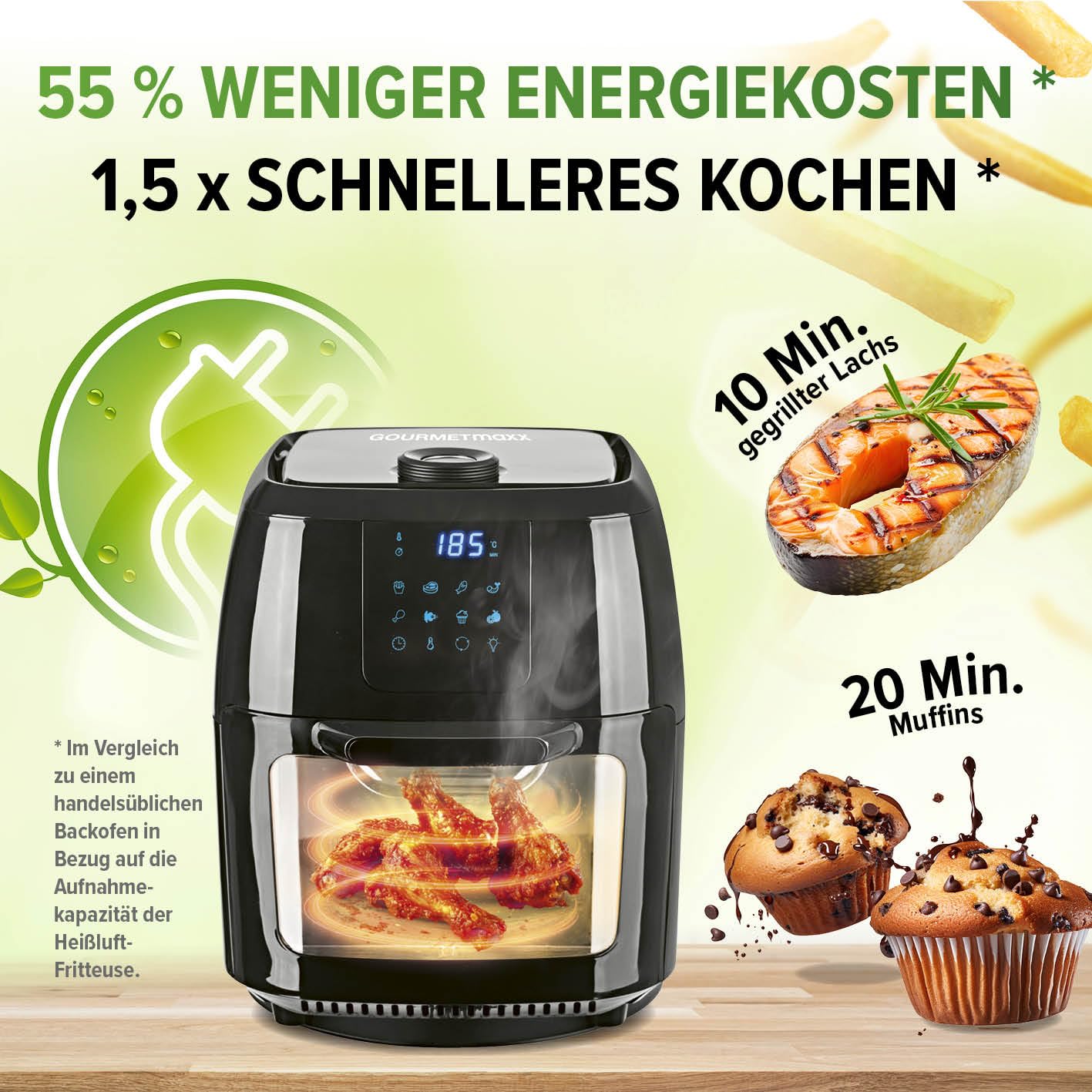 Gourmetmaxx Frytkownica na Gorące Powietrze 1800 W 9 Litrów Czarna