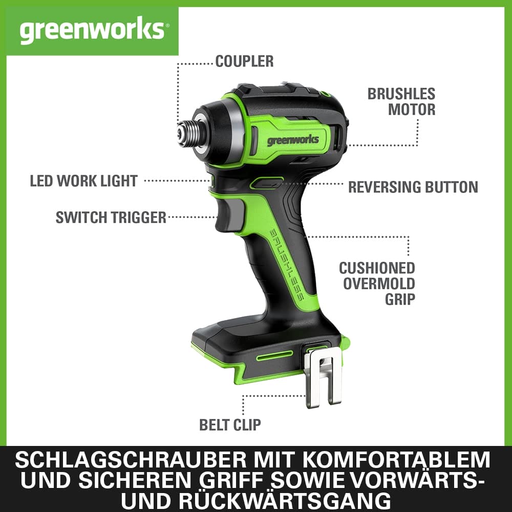 Greenworks GD24DD35K2 Akumulatorowa Wiertarko-Wkrętarka i Zakrętarka Udarowa GD24ID200 PLUS 2 x 24V 2 Ah Baterie i Ładowarka