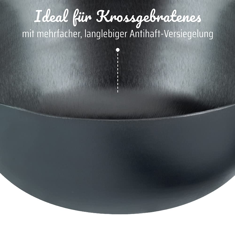 Wszechstronne zastosowanie –: Wszechstronne zastosowanie – wok z pokrywką jest wielofunkcyjny i nadaje się do smażenia, duszenia, duszenia i smażenia mięsa, ryb lub warzyw.