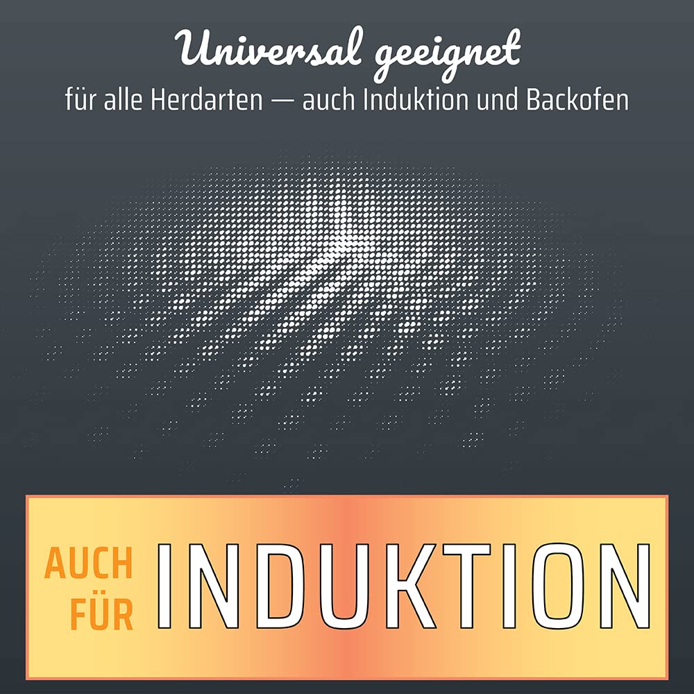 Wytrzymałe wykonanie –: Wytrzymałe wykonanie – uniwersalny garnek jest wykonany z wytrzymałego, ciężkiego żeliwa i przekonuje swoją wysoką jakością.