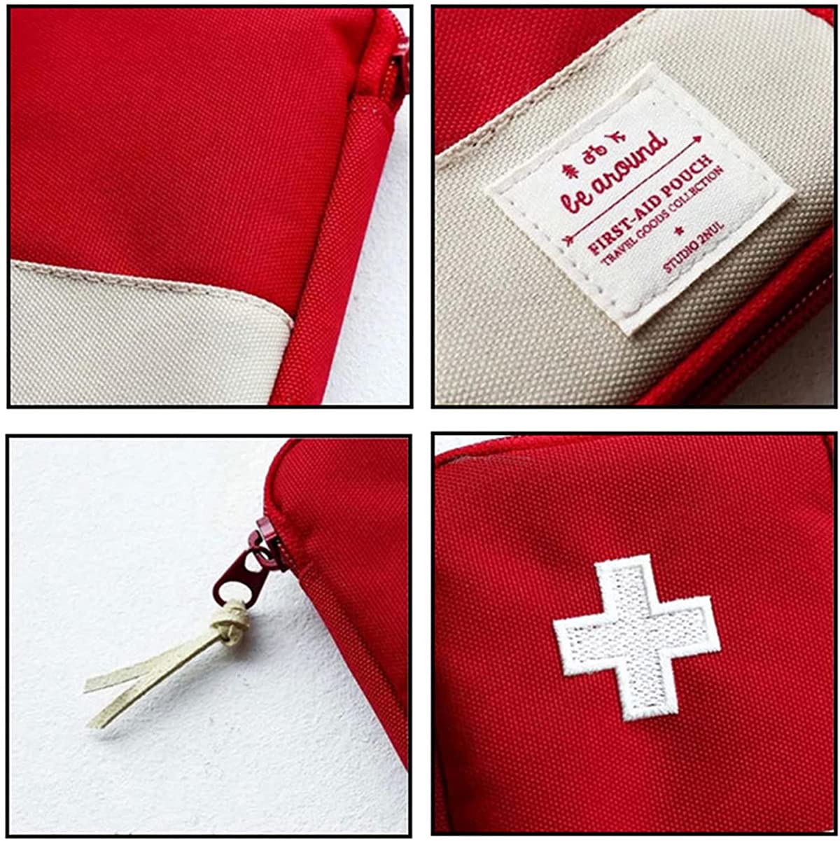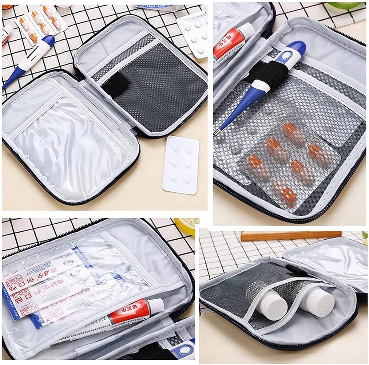 ✅ Wystarczająco dużo miejsca:: Wystarczająco dużo miejsca: podział wielu kieszeni i przegródek ułatwia sortowanie i przechowywanie wszelkiego rodzaju leków do przechowywania leków, wacików nasączonych alkoholem, powszechnie stosowanych leków, opatrunków na rany, taśmy klejącej, agrafki, narzędzi medycznych, takich jak nożyczki, p