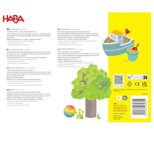 HABA Puzzle z chwytakiem pierwsze słowa – drewniane puzzle z dużymi guzikami do nauki pierwszych słów, odkrywanie kolorów i rozpoznawanie kształtów, od 12 miesięcy – 2011813001