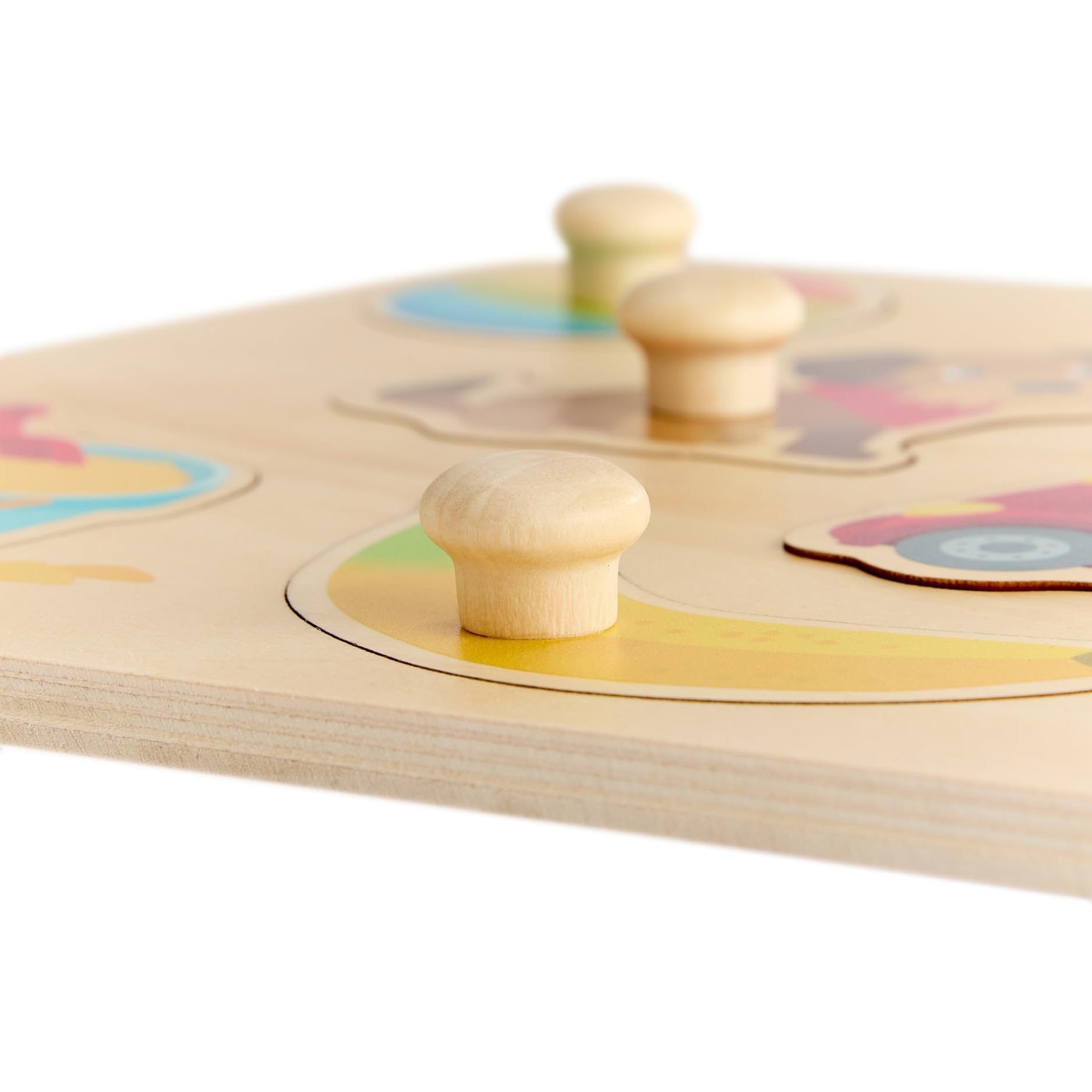 Wspieranie motoryki i: Wspieranie motoryki i kreatywności: dzięki uchwytowym, drewnianym guzikom dzieci mogą łatwo używać puzzli, wzmacniając motorykę precyzyjną i trenując koordynację ręka-oko.