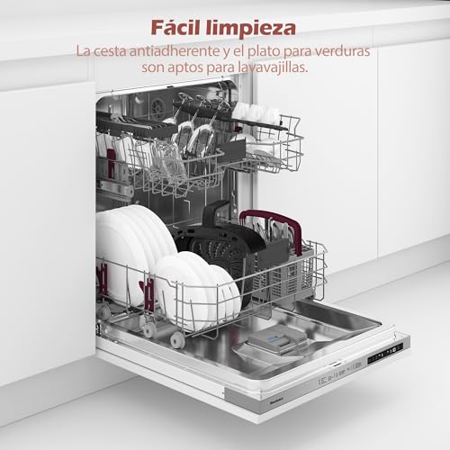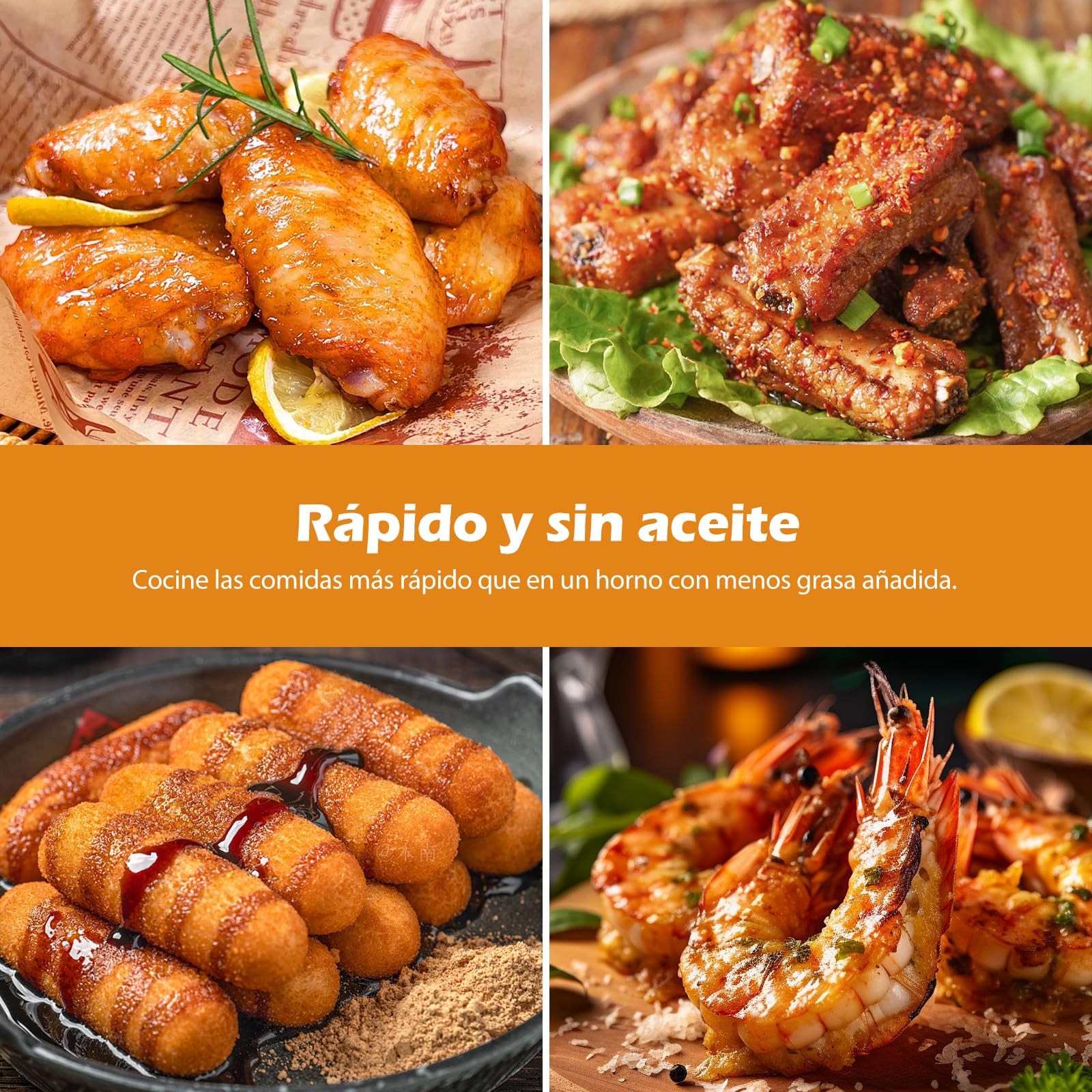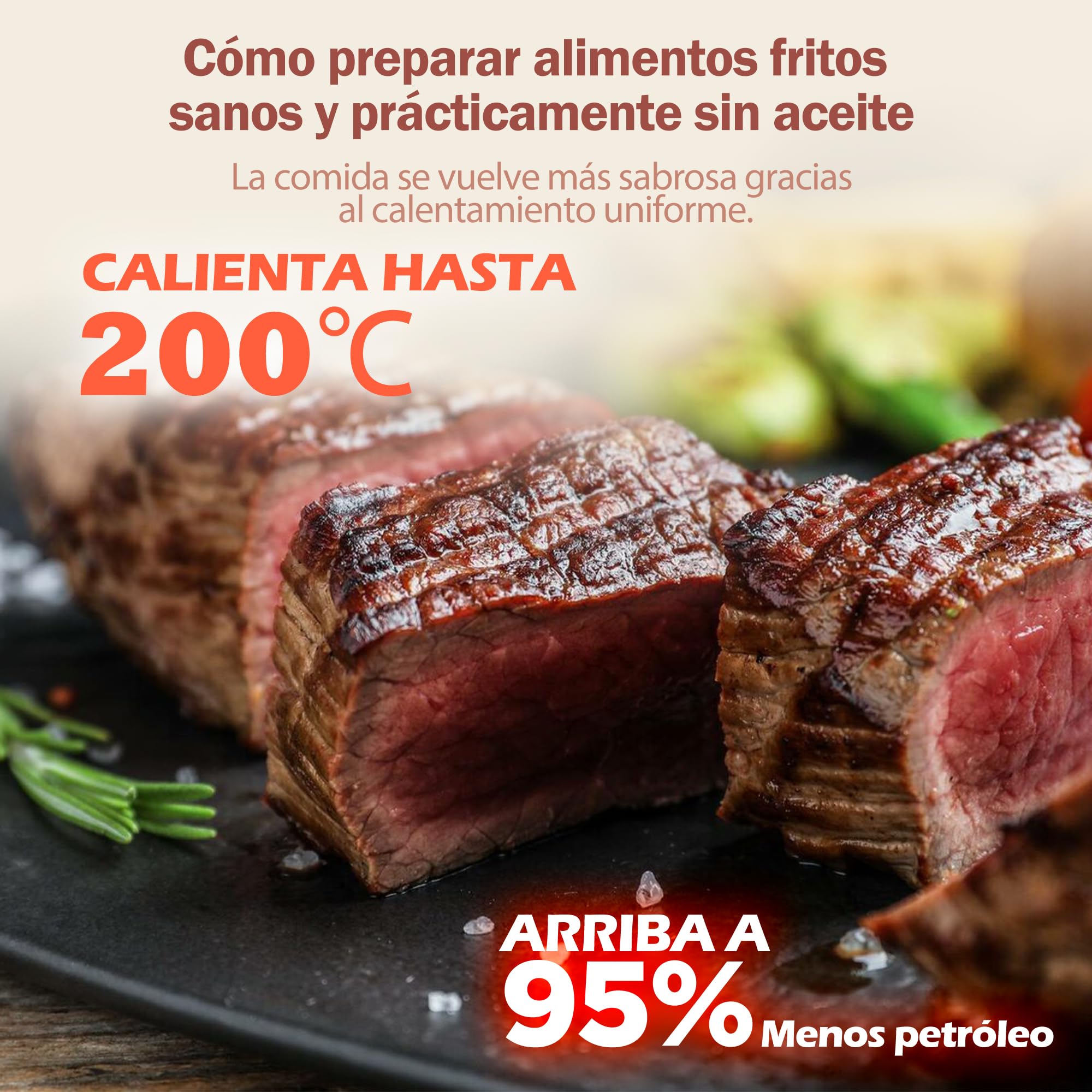 Zdrowe gotowanie przy: Zdrowe gotowanie przy 95% mniej oleju Air Fryer – dzięki systemowi pary i gorącym powietrzem oraz materiałom niezawierającym BPA redukujesz ryzyko związane z tłuszczem bez utraty smaku. Nieprzywierający kosz ze szkła hartowanego umożliwia monitorowanie gotowania i ułatwia czyszczenie