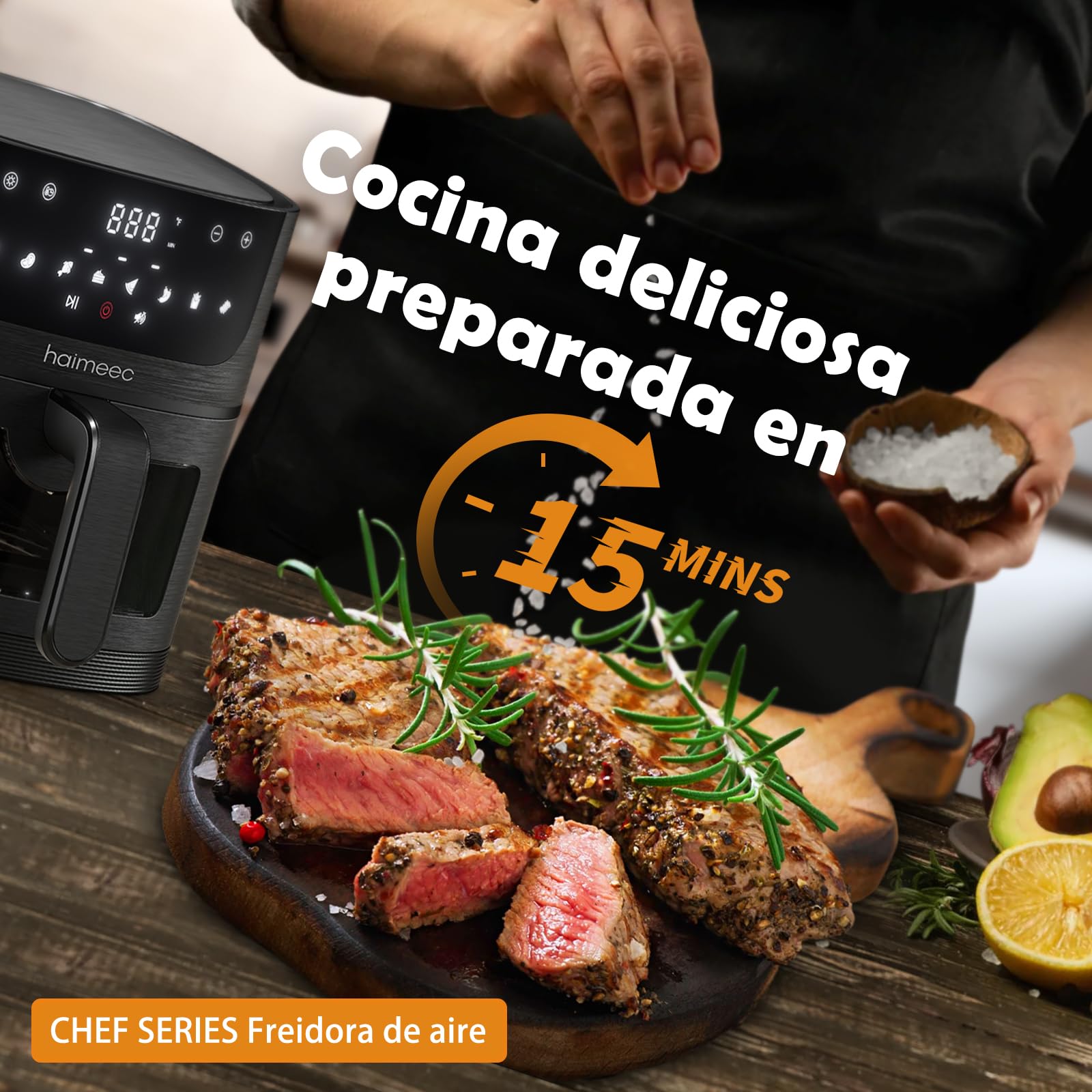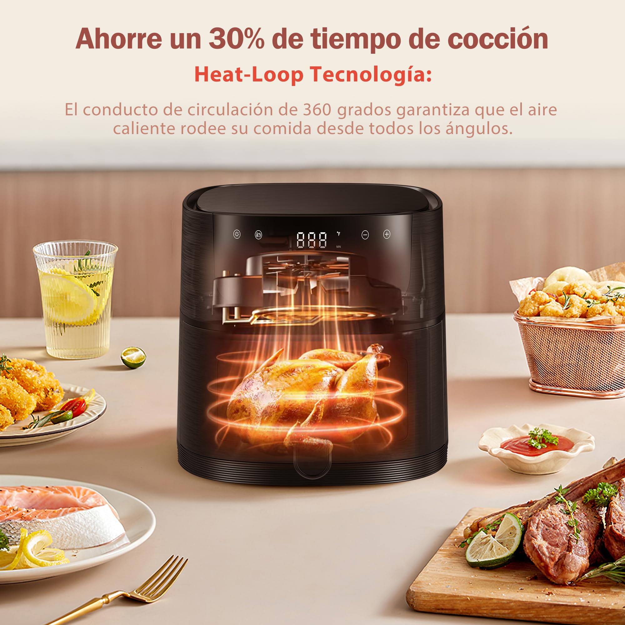 Smak w kilka: Smak w kilka sekund. Odkryj frytkownicę HAIMEEC Air z rewolucyjną technologią podwójnego oporu Heat-Loop, zaprojektowaną do szybkiego ogrzewania i równomiernego gotowania