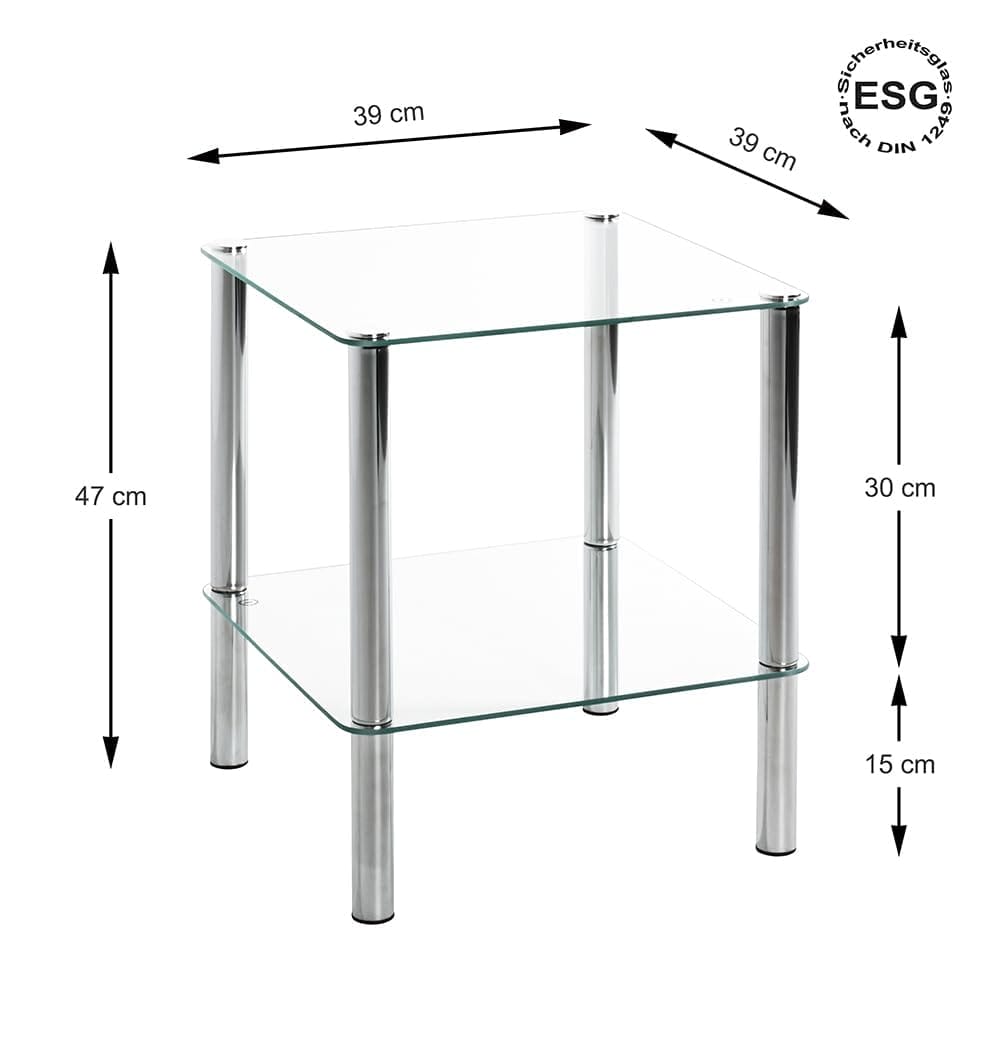 • Z chromowanej rury stalowej • Przezroczyste szkło bezpieczne • 39 x 39 x 47 • Waga netto: 4,5 kg