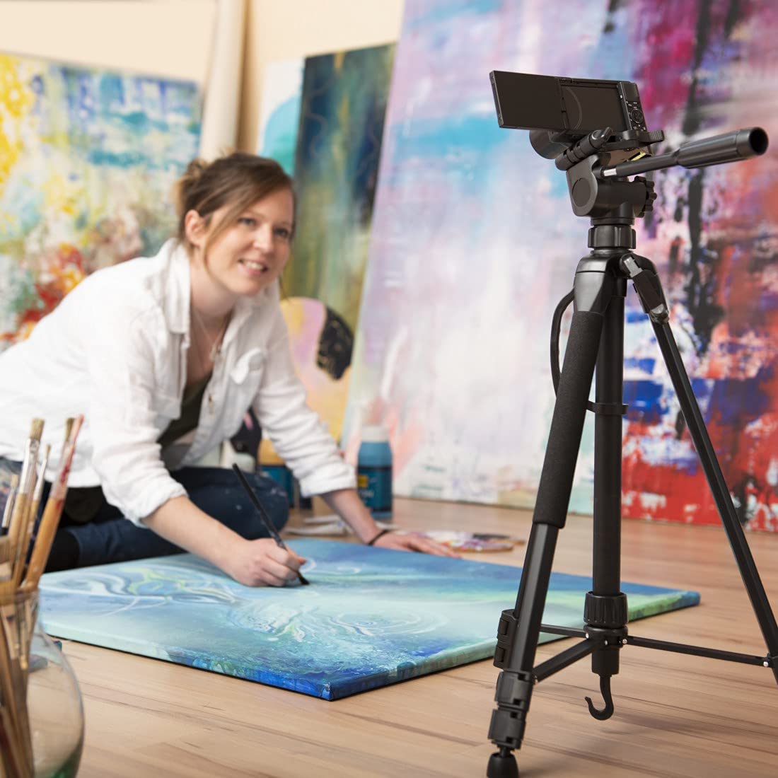 Hama Action 153 to lekki statyw do aparatu, który jest również kompatybilny z telefonami komórkowymi. Jego elastyczna wysokość przedłużenia do 153 cm oraz solidna 3-kierunkowa głowica i uchwyt na telefon komórkowy sprawiają, że jest idealny do transmisji na żywo z iPhone’em lub do robienia zdjęć.