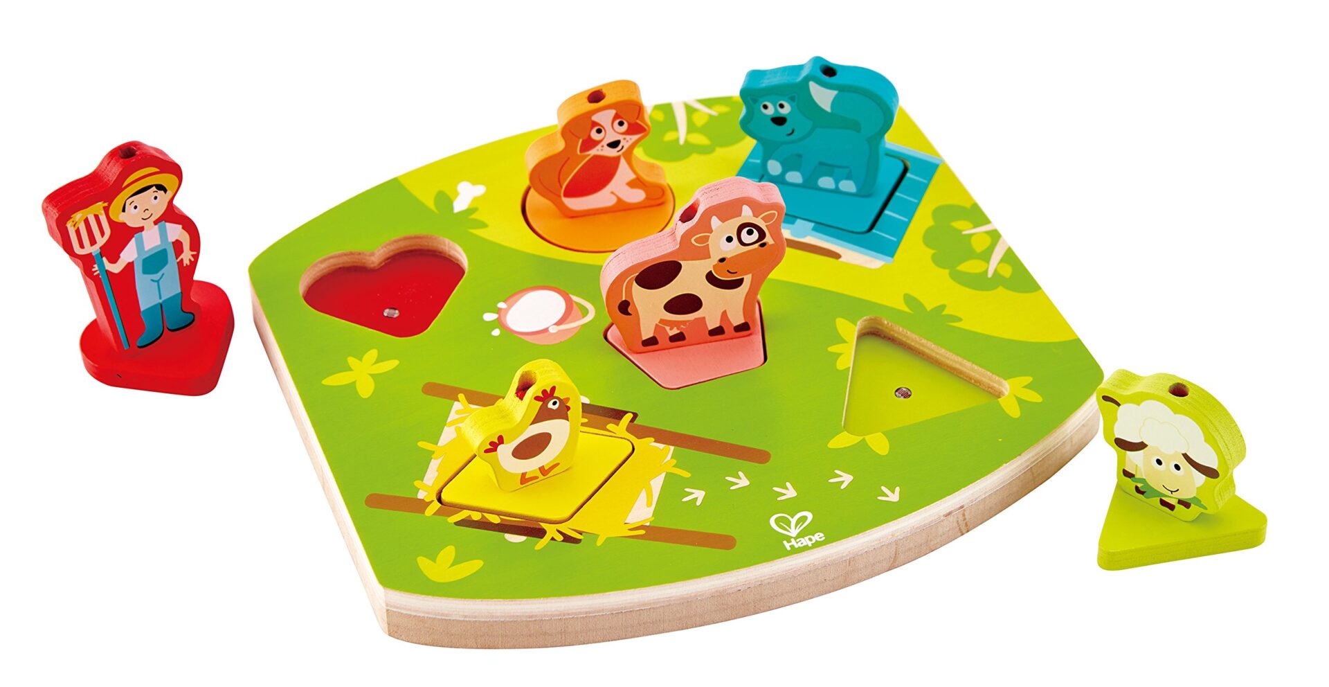 ✅ 🐄 Puzzle ze: 🐄 Puzzle ze zwierzętami hodowlanymi – Zwierzęta hodowlane to pierwsze zwierzęta, których uczymy najmłodszych. Hape oferuje puzzle składające się z 7 drewnianych elementów ilustrujących emblematyczne zwierzęta hodowlane, takie jak: krowa, owca, kogut, kot, a nawet rolnik. Twój maluch będzie mógł god