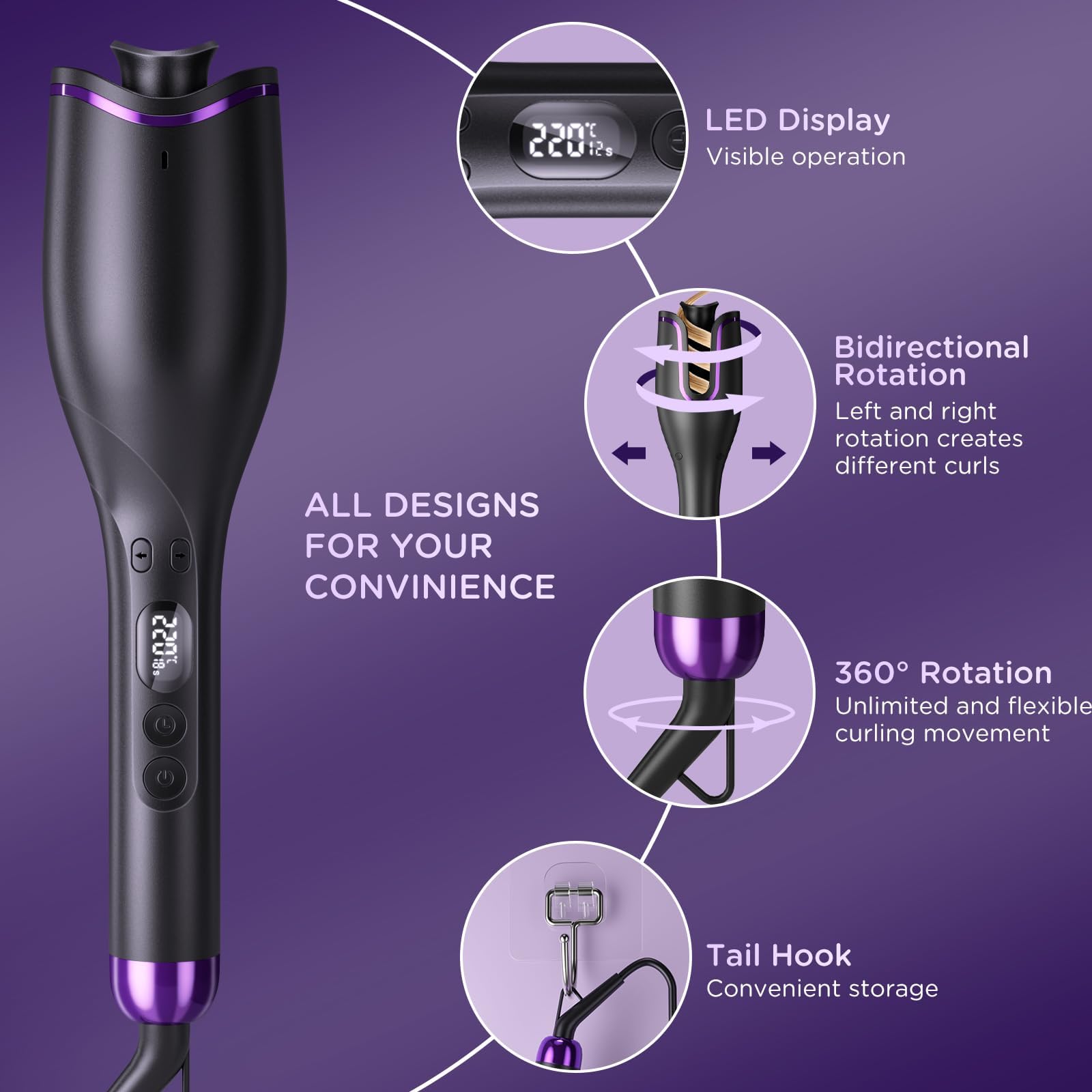 Jedną z największych zalet lokówki HAPPHOOH jest możliwość regulacji temperatury, co pozwala dostosować ją do różnych rodzajów włosów. Szybkie nagrzewanie oraz obrotowa lokówka sprawiają, że stylizacja zajmuje minimalny czas, a efekt utrzymuje się przez długi czas. Dodatkowo, funkcja automatycznego wyłączania zapewnia bezpieczeństwo użytkowania urządzenia.