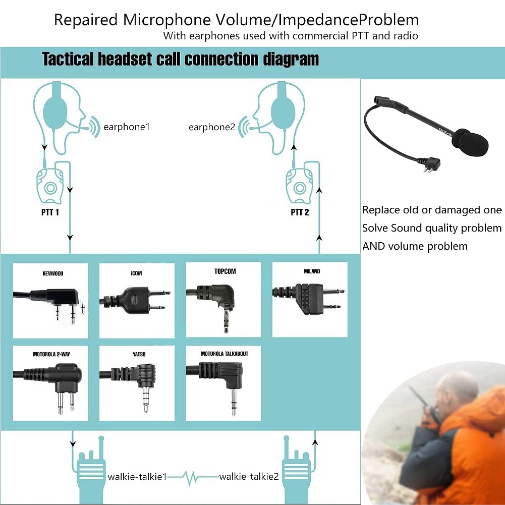 Mikrofon do zestawu słuchawkowego, plug & play Czarny 2-biegunowy mikrofon Clear Sound do Armorwerx Comtac Iii Comtac