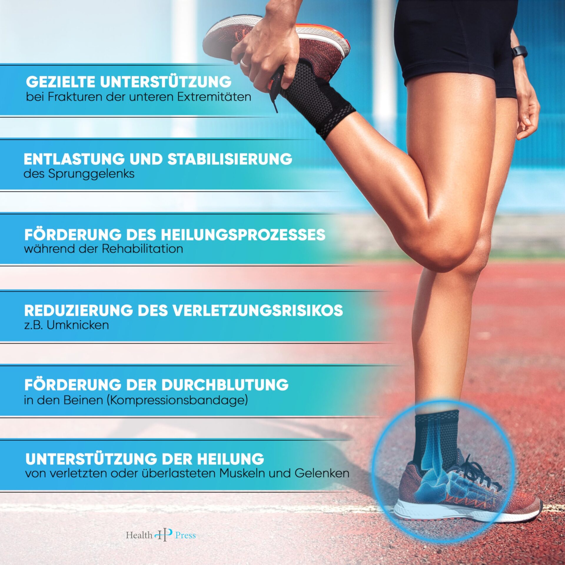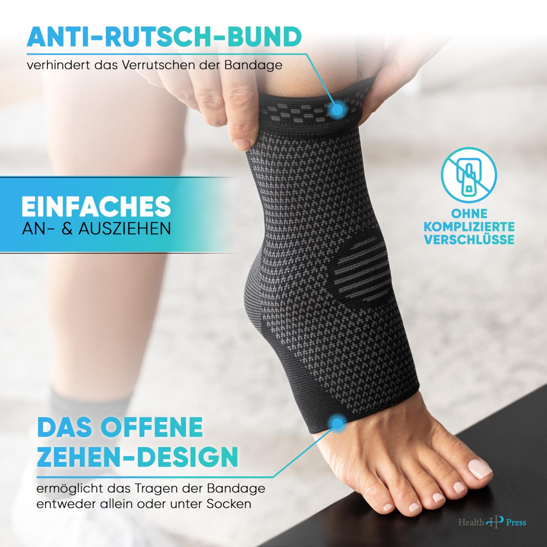 ✅ 💪 Optymalne wsparcie:: 💪 Optymalne wsparcie: bandaż na staw skokowy Health Press to produkt medyczny, który służy do odciążenia i stabilizacji stawu skokowego. Bandaż na stopę zapewnia ukierunkowane wsparcie w przypadku złamań kończyn dolnych i wspomaga proces gojenia podczas rehabilitacji uszkodzonych lub przeciążonych