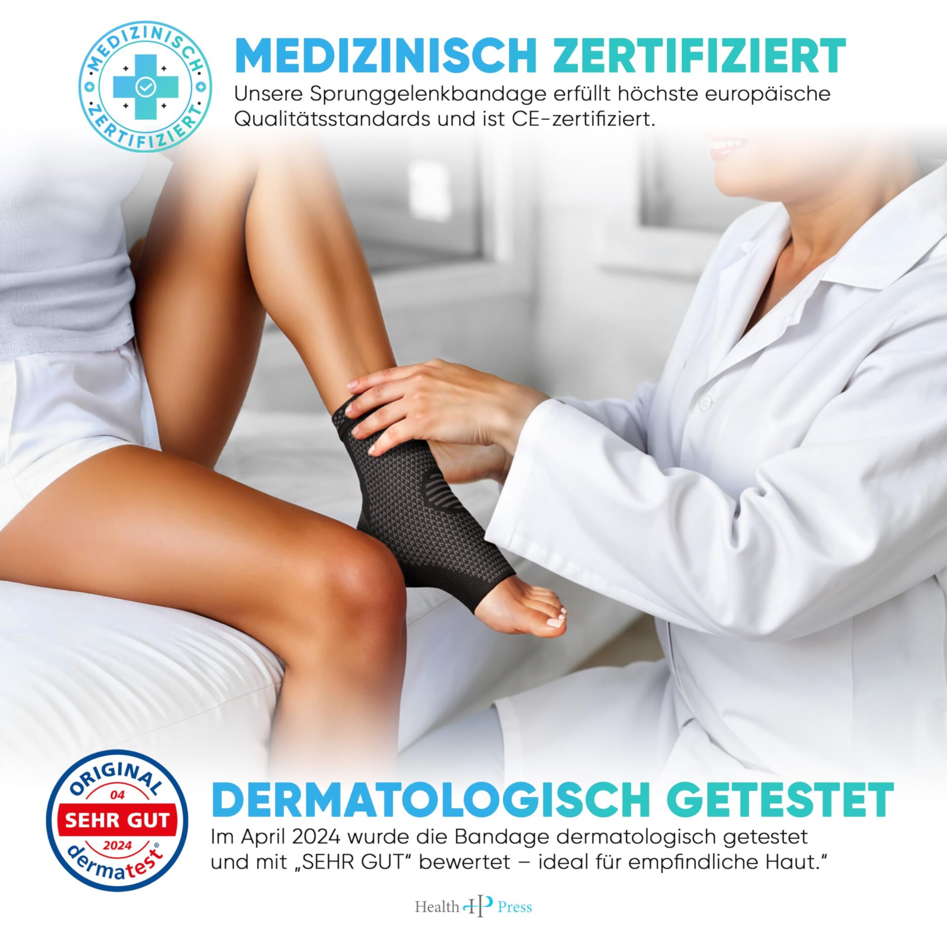 ✅ CERTYFIKOWANY MEDYCZNIE I: CERTYFIKOWANY MEDYCZNIE I TESTOWANY DERMATOLOGICZNIE: Dlaczego Health Press? Nasz bandaż na staw skokowy posiada certyfikat medyczny i spełnia najwyższe europejskie standardy jakości. Posiada znak CE, który świadczy o bezpieczeństwie i skuteczności. W kwietniu 2024 roku bandaż został przetestowany d