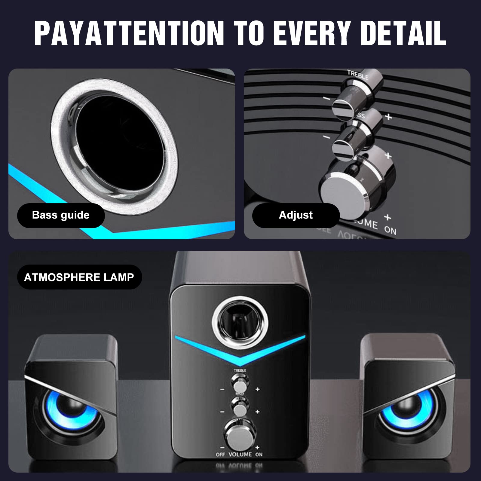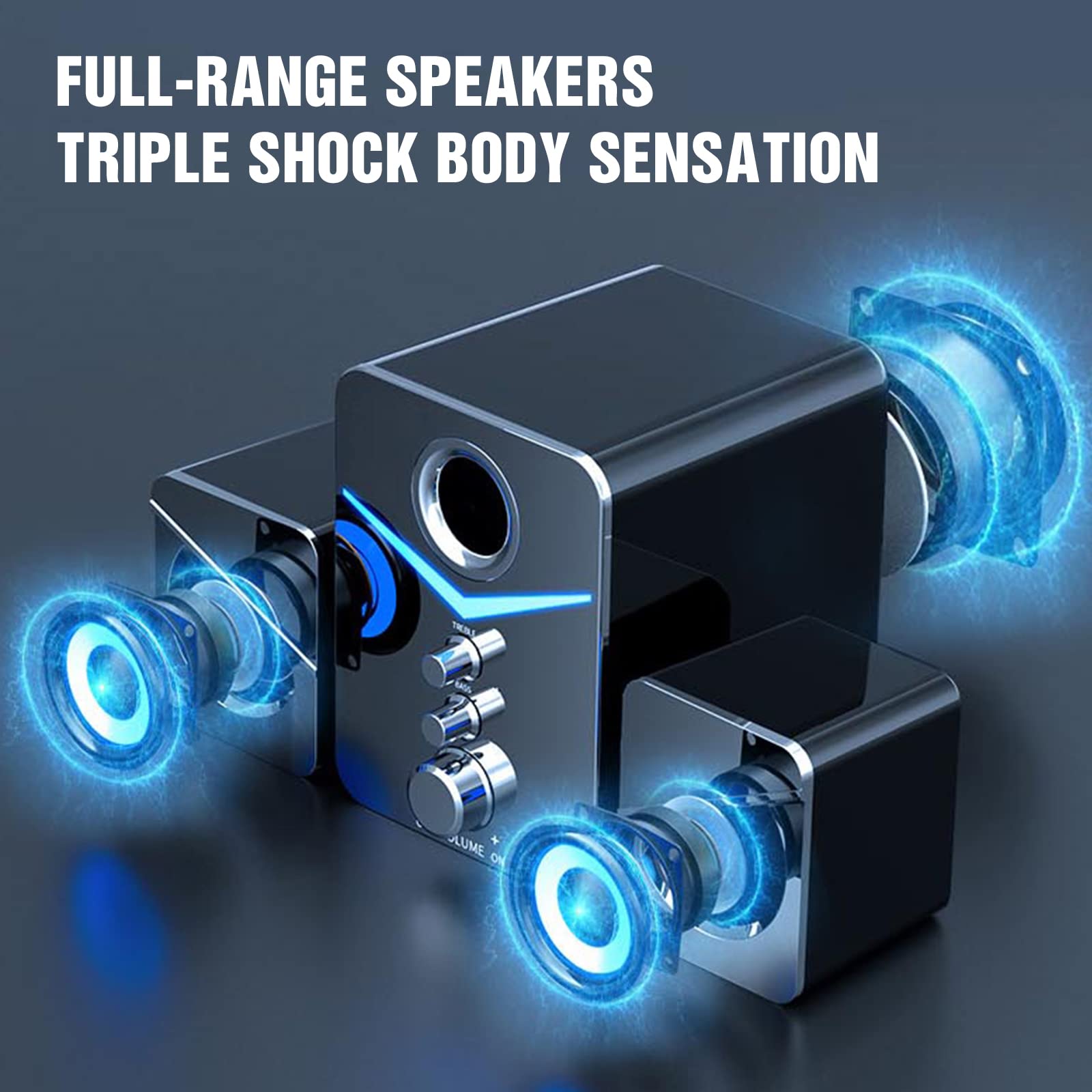 HEANTTV Głośnik komputerowy z subwooferem 2.1 zapewnia bogaty dźwięk o wysokiej jakości, który wypełni Twoje pomieszczenie. Subwoofer gwarantuje głębokie basy, podczas gdy dwa satelitarne głośniki dostarczają czyste i wyraźne dźwięki wysokich tonów.