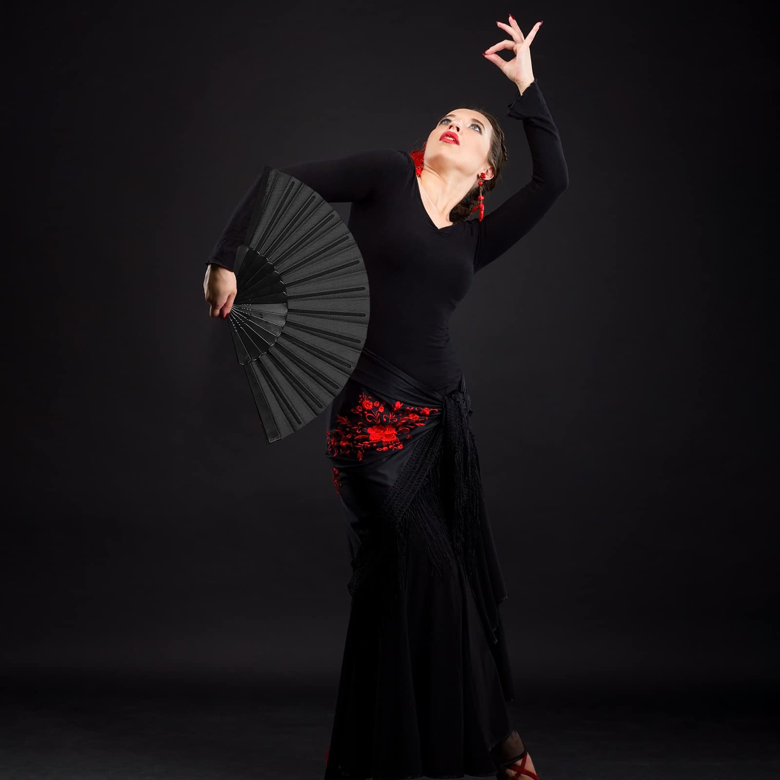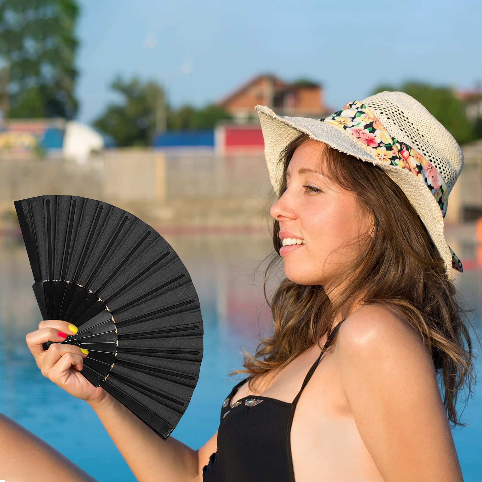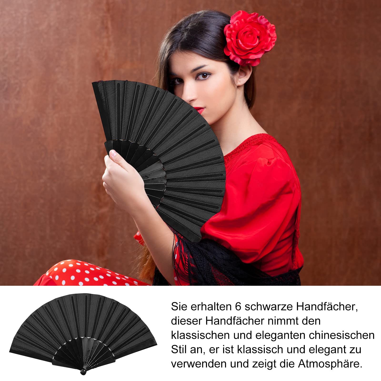 HENGBIRD 6 składanych wentylatorów wentylatorów, orientalne wentylatory z czarnego bambusa, chińskie wentylatory, wentylatory z tkaniny na wesela, wydajność, taniec, dekoracja domu, impreza, letnie