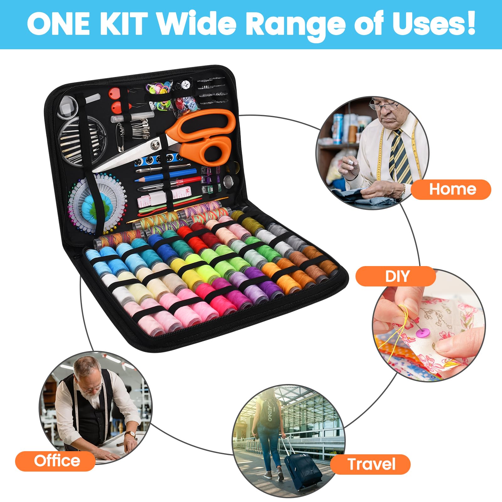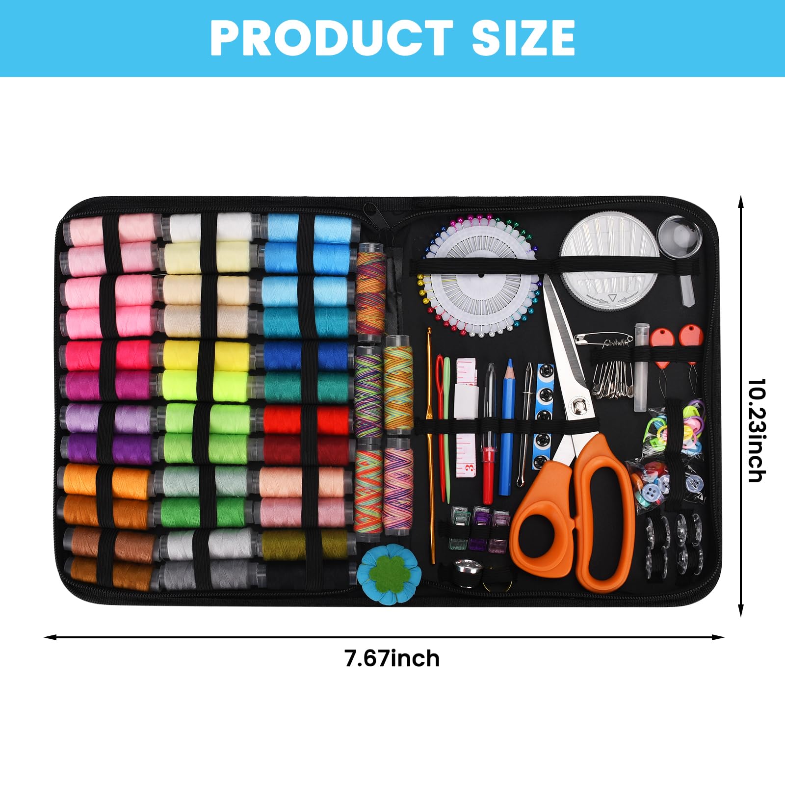 Łatwy do przenoszenia:: Łatwy do przenoszenia: wszystkie akcesoria do szycia są umieszczone w kompaktowym pudełku zapinanym na zamek, które jest kompaktowe i nie poluzowuje się. Lekki, łatwy do przenoszenia i przechowywania. Można ją zabrać ze sobą w podróż, w podróż służbową, nawet na każdą okazję (taką jak bankiety, impr
