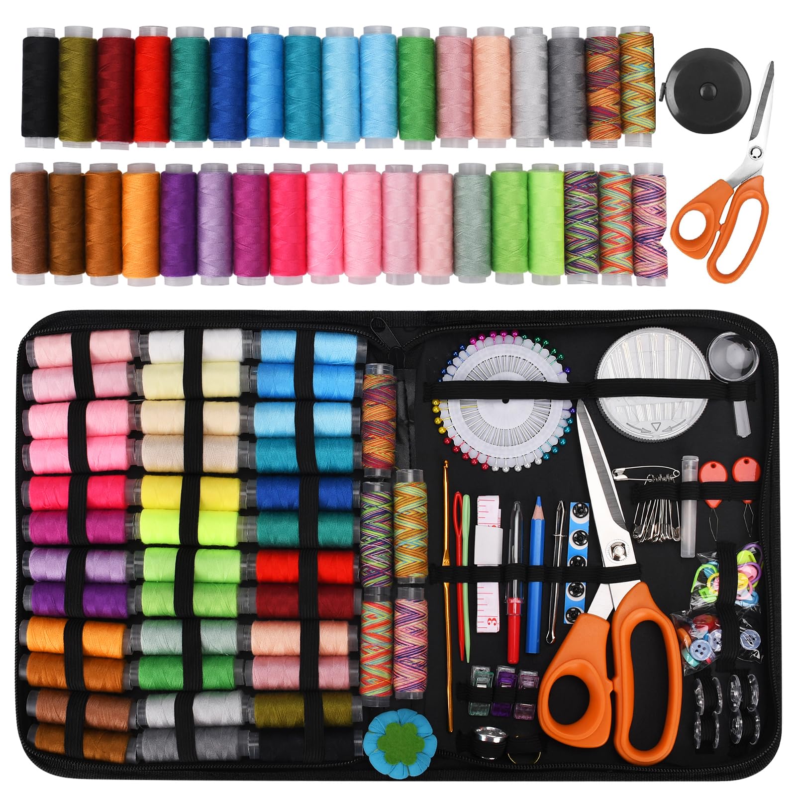 HEPAZ Zestaw do szycia, 200 szt., zestaw akcesoriów do szycia premium z futerałem transportowym, zestawem do szycia, uniwersalnym domem i zestawami do