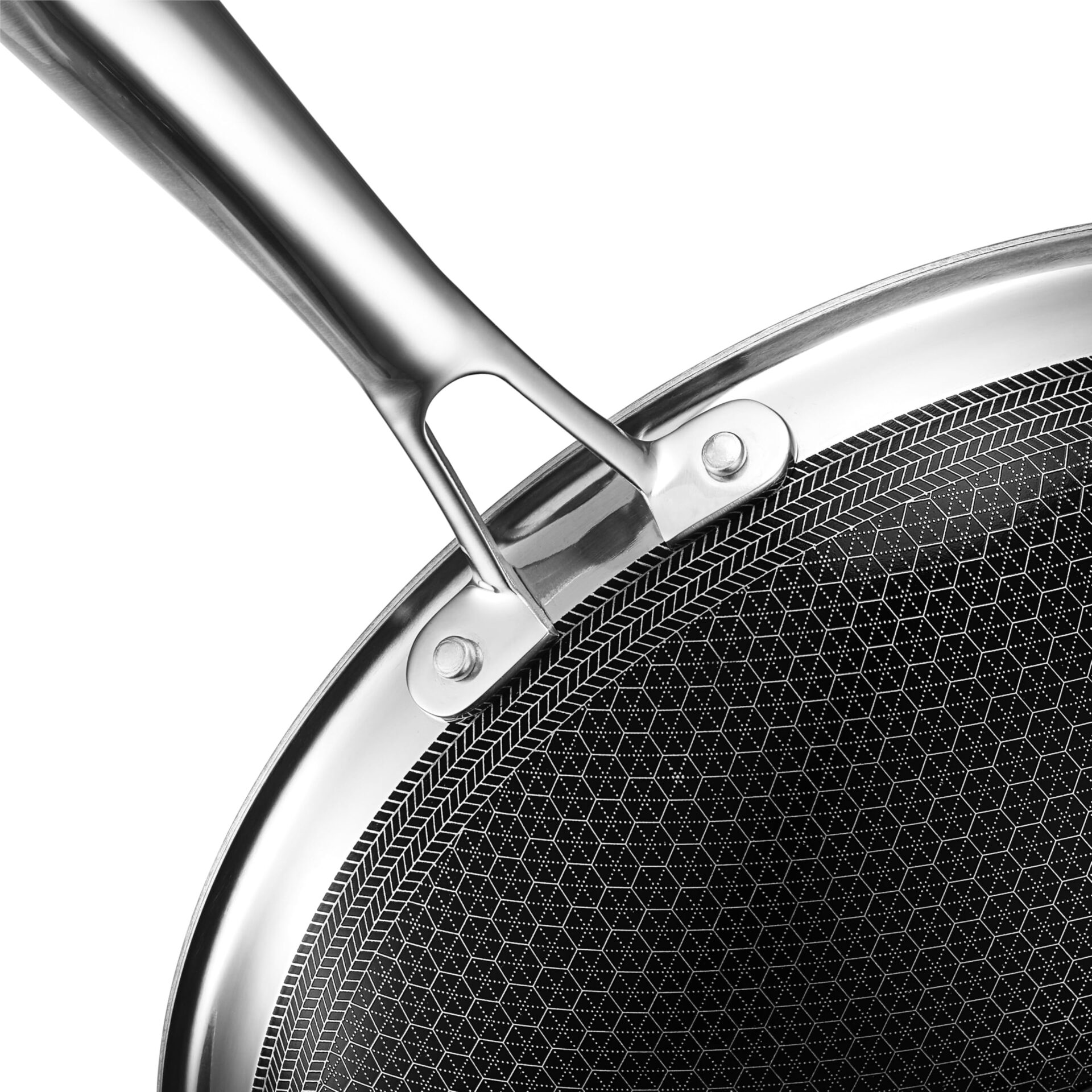 HexClad Hybrydowy nieprzywierający wok 25 cm, uchwyt utrzymujący chłód, gotowy do mycia w zmywarce, do piekarnika do 480°C, indukcyjności i kompatybilny ze wszystkimi płytami
