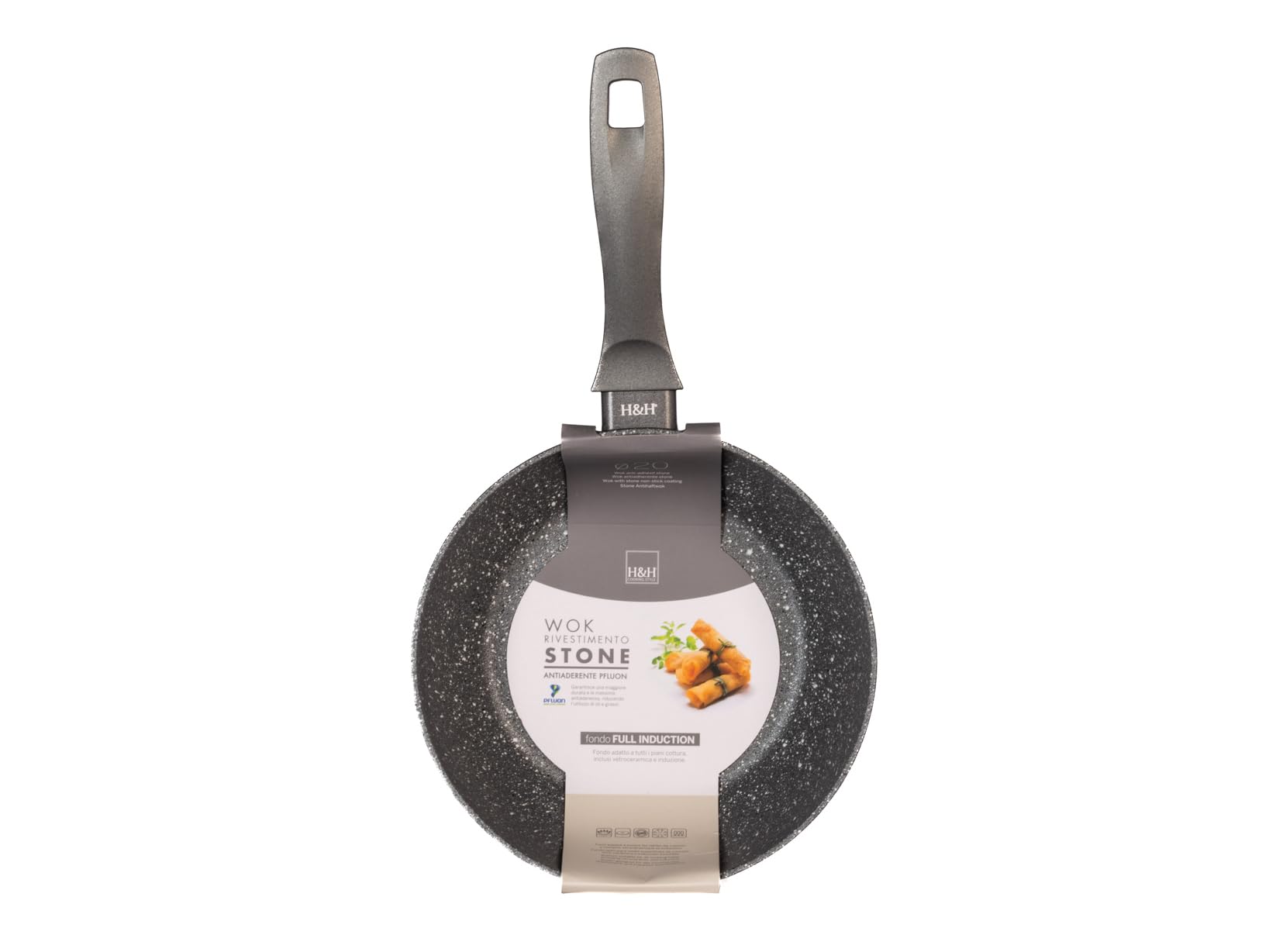 H&H Stone Grey Wok Aluminium z powłoką nieprzywierającą kamień, 20 cm,
