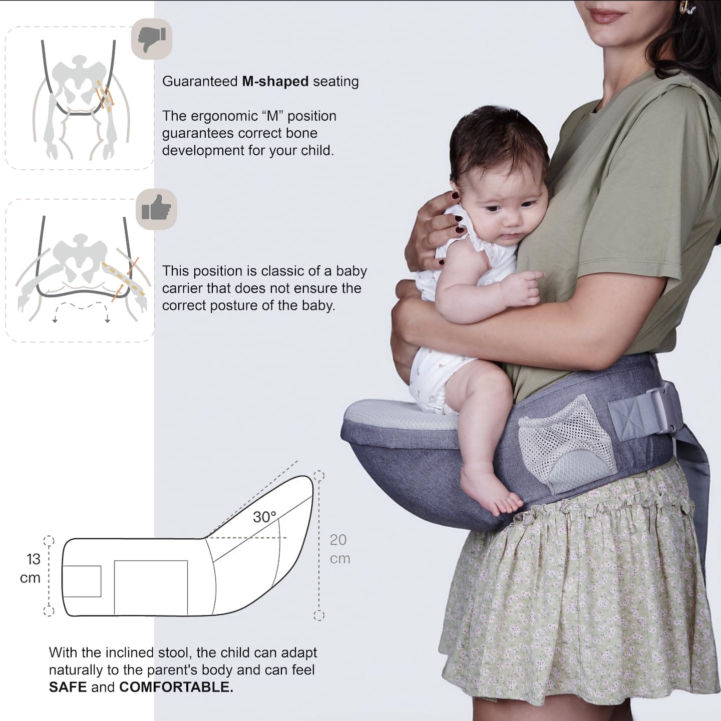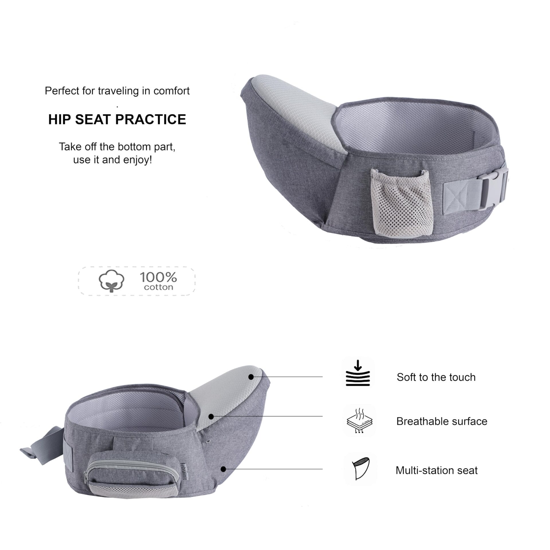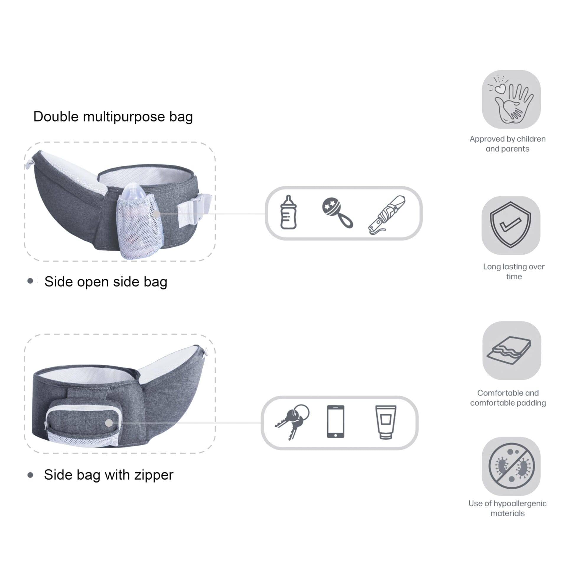 Hipseat siedziska nosidełko noworodka regulowane podparcie lędźwiowe z bocznymi kieszeniami na butelki od 4 miesięcy do 17 kg z superfice w 3D oddychająca siatka i antypocenie
