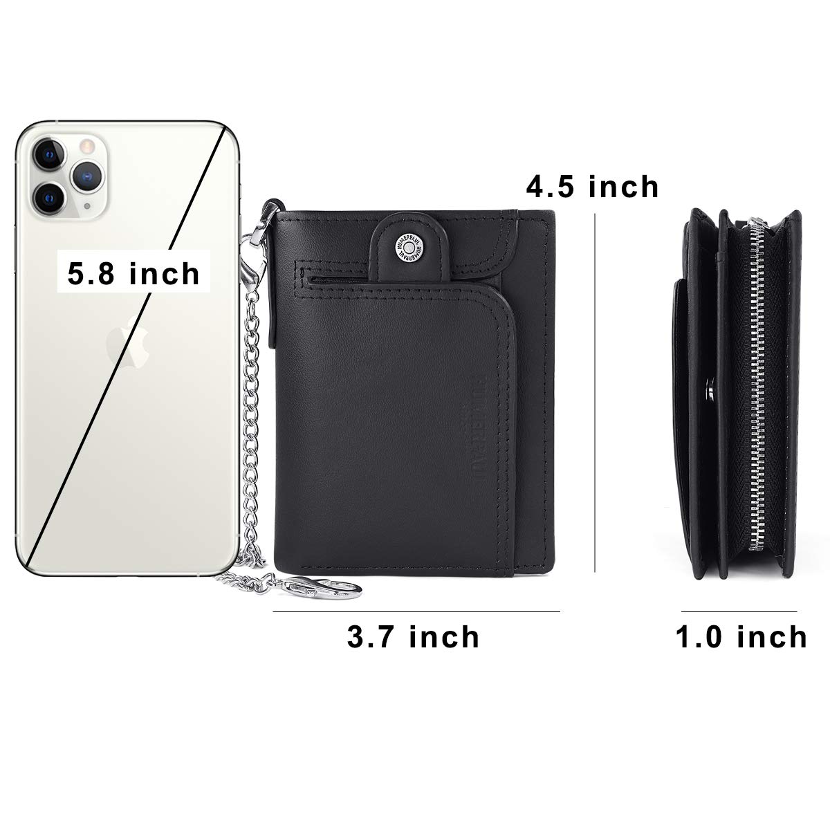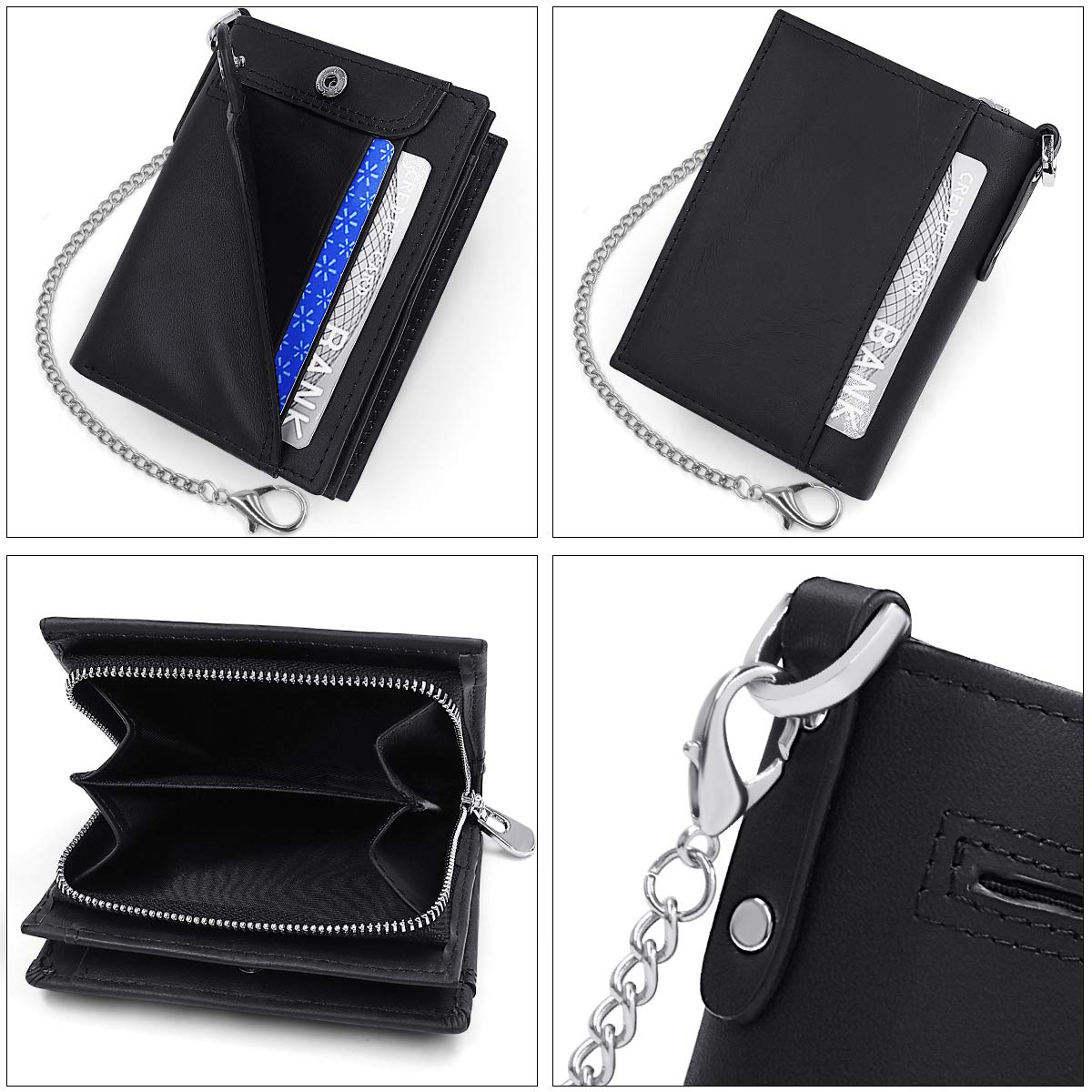✅ Skórzany portfel z: Skórzany portfel z łańcuszkiem – portfel z łańcuszkiem i blokadą RFID (po zamknięciu) ma wymiary 9,5 x 11,5 x 2,5 cm. Łatwy do przenoszenia i trzymania, można go włożyć do torby lub trzymać w ręku. Ten bezpieczny skórzany portfel z blokadą RFID jest wyposażony w łańcuszek zabezpieczający (ok. 25 cm)