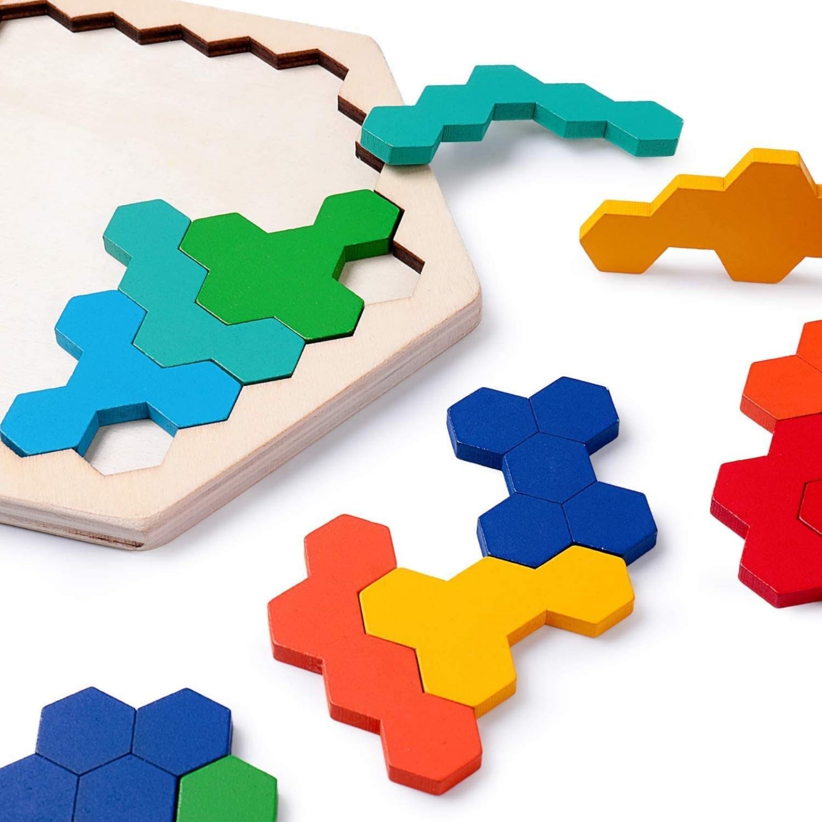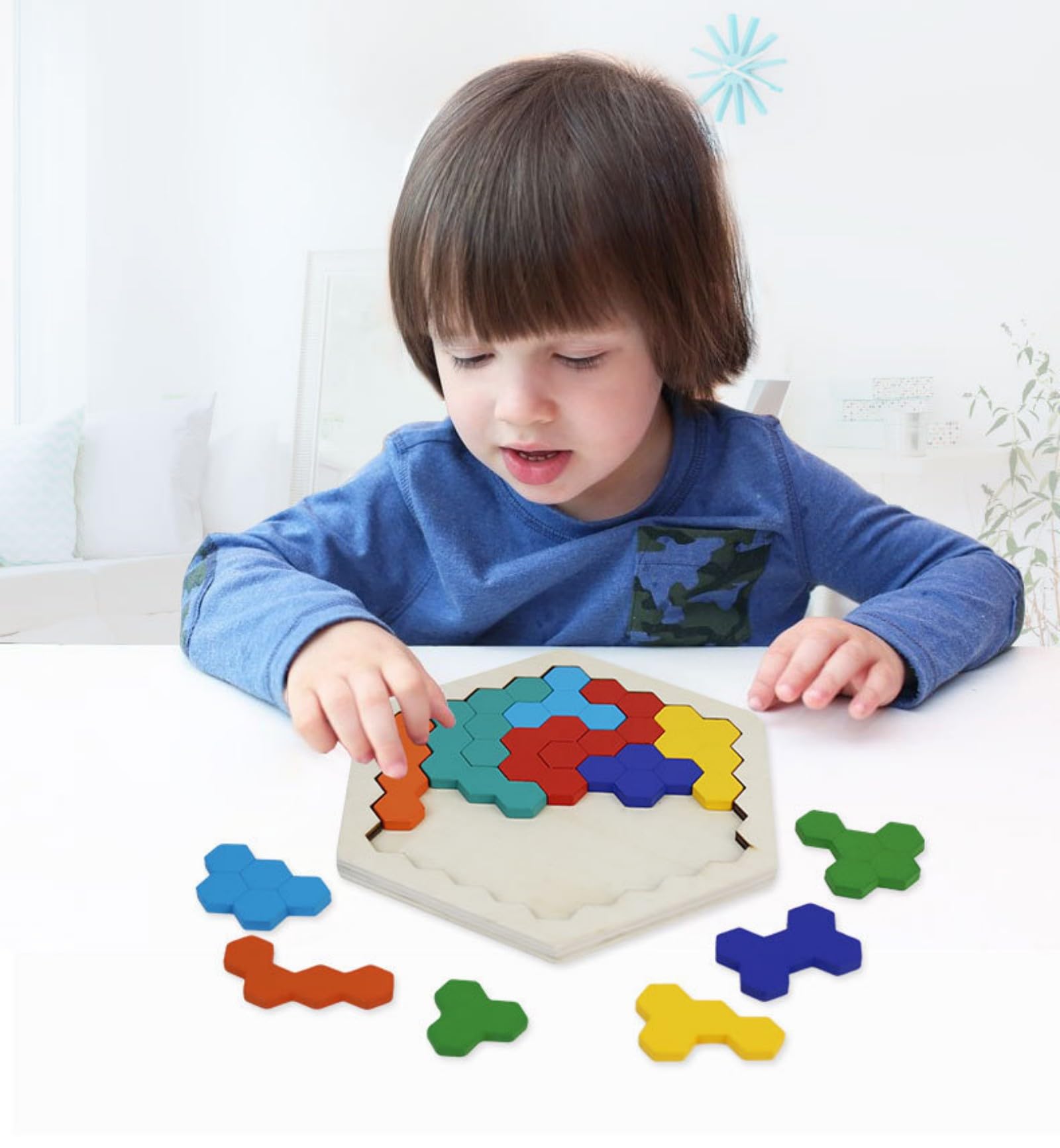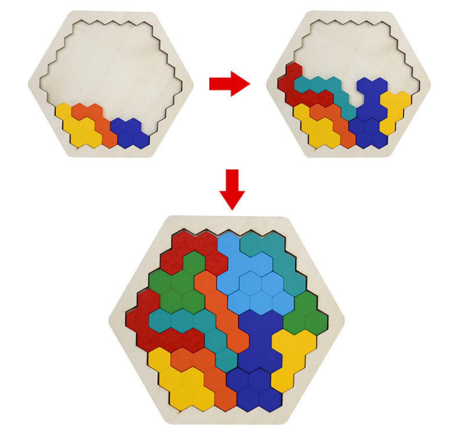 Drewniane puzzle Tangram sześciokątne – Montessori edukacyjna zabawka dla dzieci