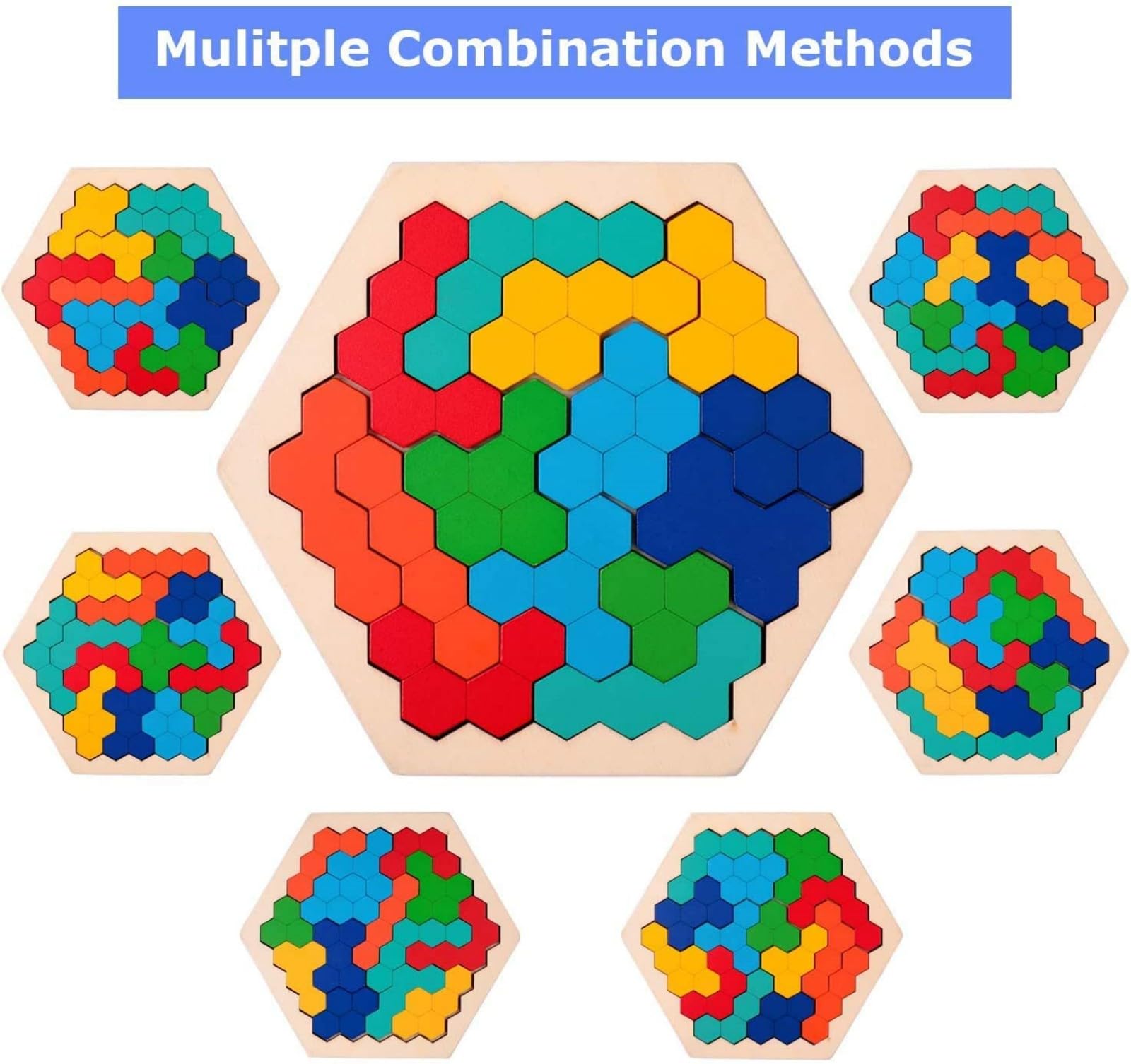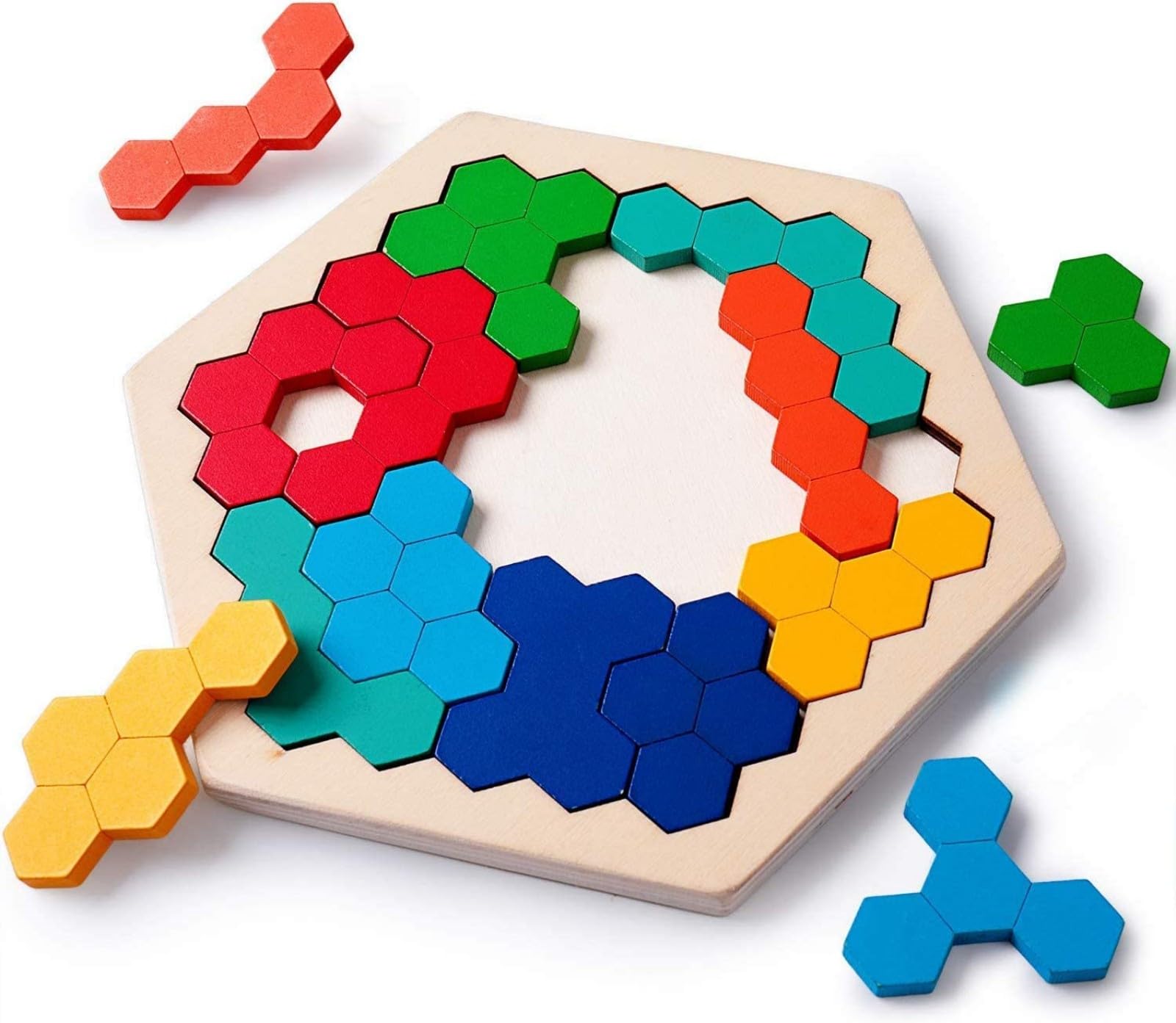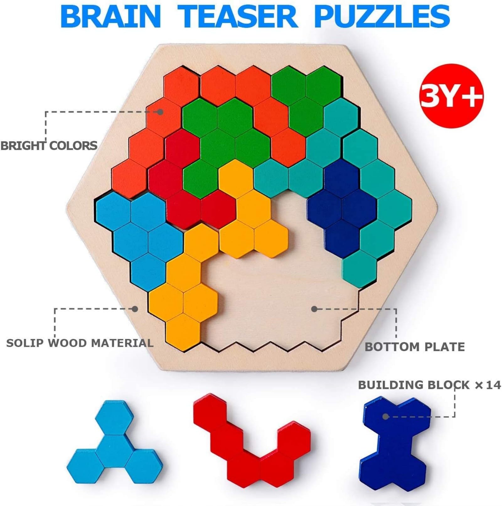 Drewniane puzzle Tangram sześciokątne – Montessori edukacyjna zabawka dla dzieci