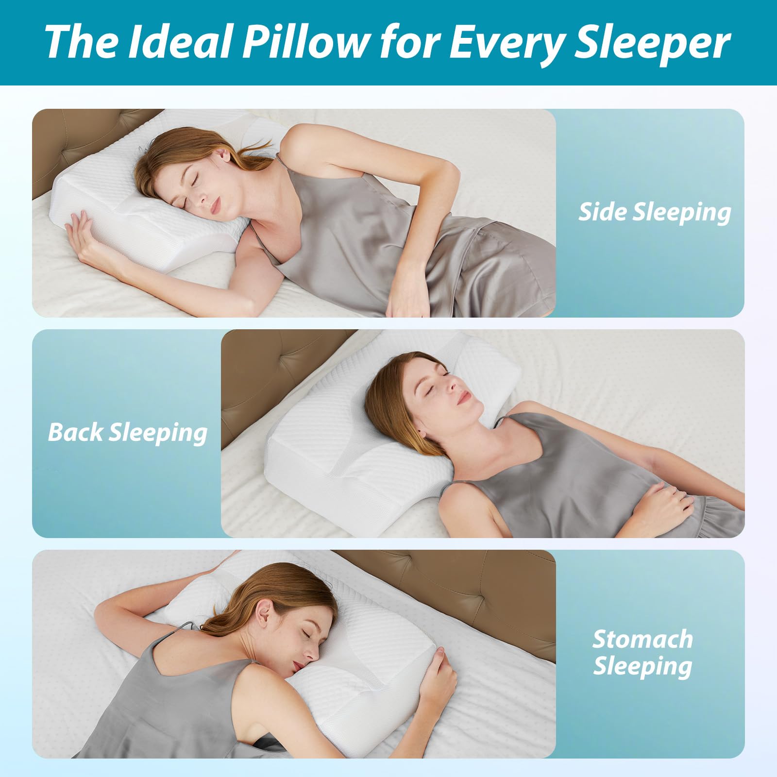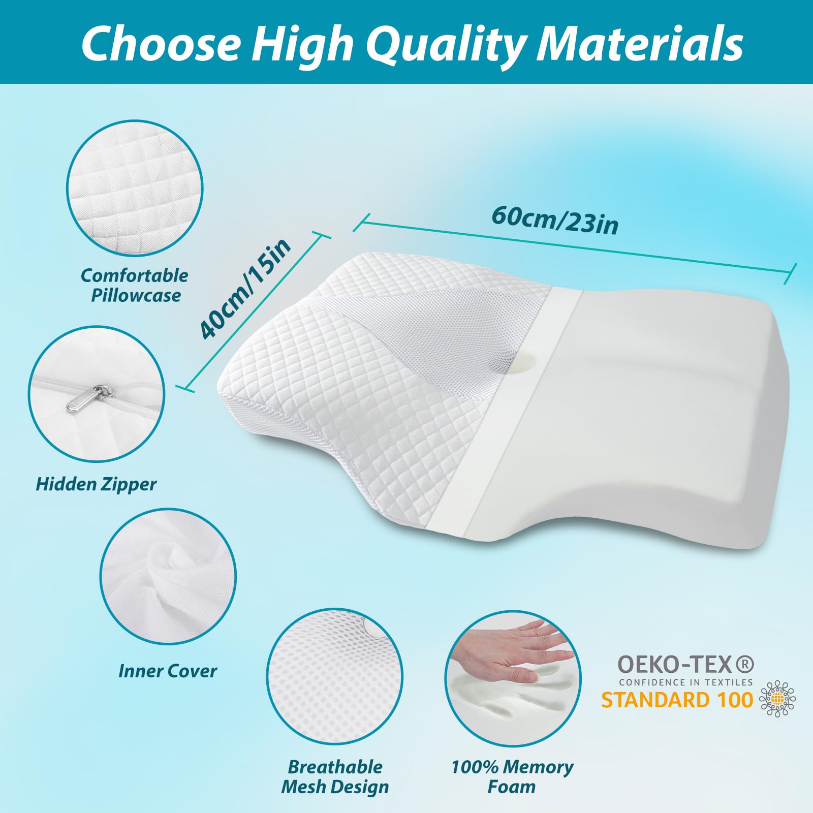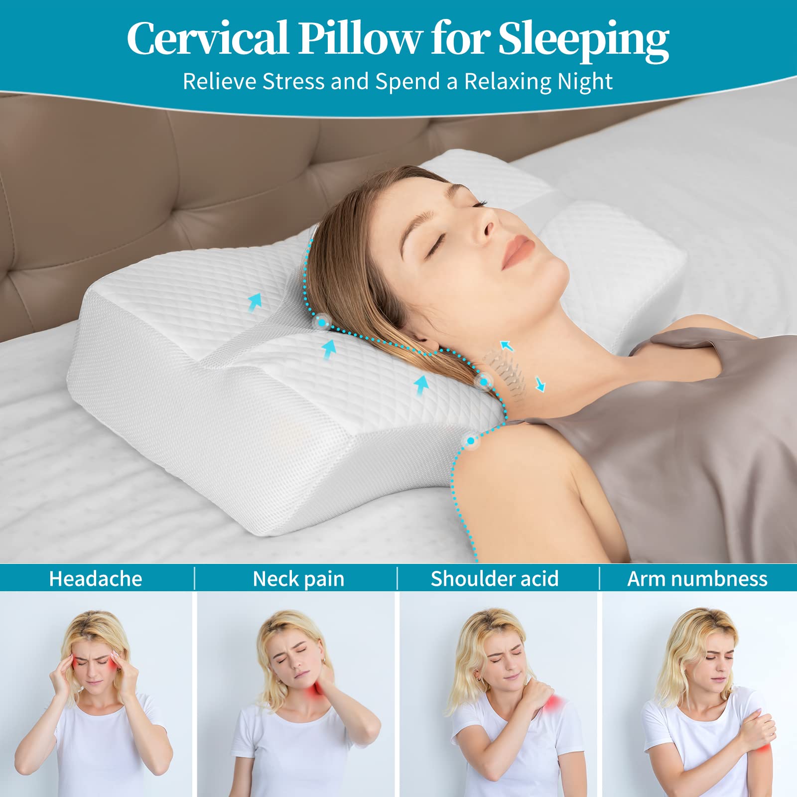 【Duża konstrukcja】Dzięki specjalnemu,: 【Duża konstrukcja】Dzięki specjalnemu, ergonomicznemu kształtowi poduszka idealnie nadaje się do różnych pozycji spania, takich jak plecy, boki i leżą na brzuchu. Ta ortopedyczna poduszka jest szczególnie pomocna dla tych, którzy często obracają się i obracają podczas snu.