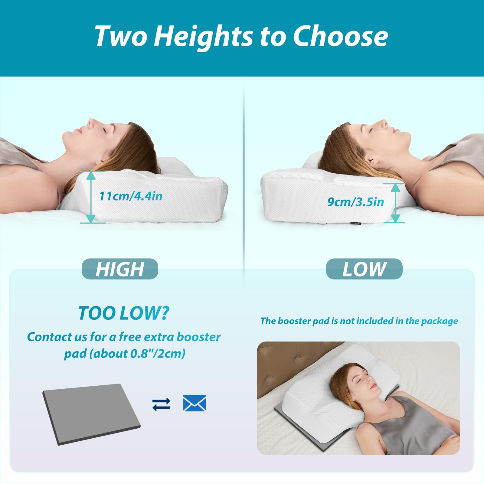 【Dwie różne wysokości】Rozmiar: 【Dwie różne wysokości】Rozmiar poduszki wynosi 61 x 41 x 9 / 10,5 cm. Wysoko i nisko zakrzywiona powierzchnia poduszki podpierającej kark na obu końcach zapewnia indywidualne dopasowanie, aby zadowolić różnych użytkowników. Jednocześnie umożliwiają przyjemny sen i zapewniają równomierne oddychanie.