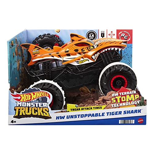 Hot Wheels Monster Trucks Niepowstrzymany Tiger Shark Pojazd terenowy, zdalnie sterowany, zabawka dla dzieci od 4 roku życia, HGV87