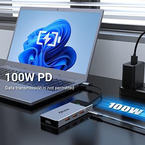 Ważną cechą tego koncentratora USB C jest również możliwość ładowania urządzeń za pomocą portu USB typu C z mocą do 100 W. To oznacza, że można podłączyć MacBooka Air/Pro/iPada/Surface i jednocześnie ładować go, co jest niezwykle wygodne w podróży lub w biurze. Dodatkowo, adapter ten jest kompatybilny zarówno z systemem Windows, jak i Mac, co sprawia, że jest uniwersalnym rozwiązaniem dla różnych użytkowników.