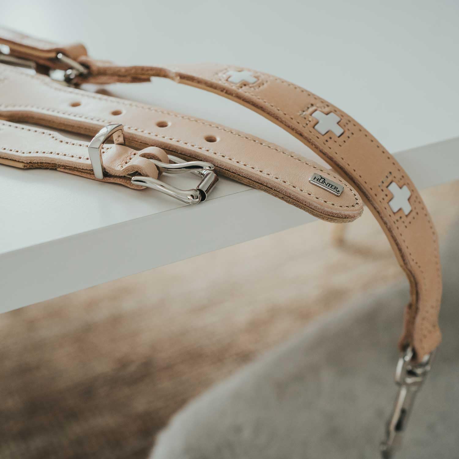 Hunter Szwajcarski niklowy kołnierz z bladej skóry, 35,0-43,0 cm, naturalny/beżowy