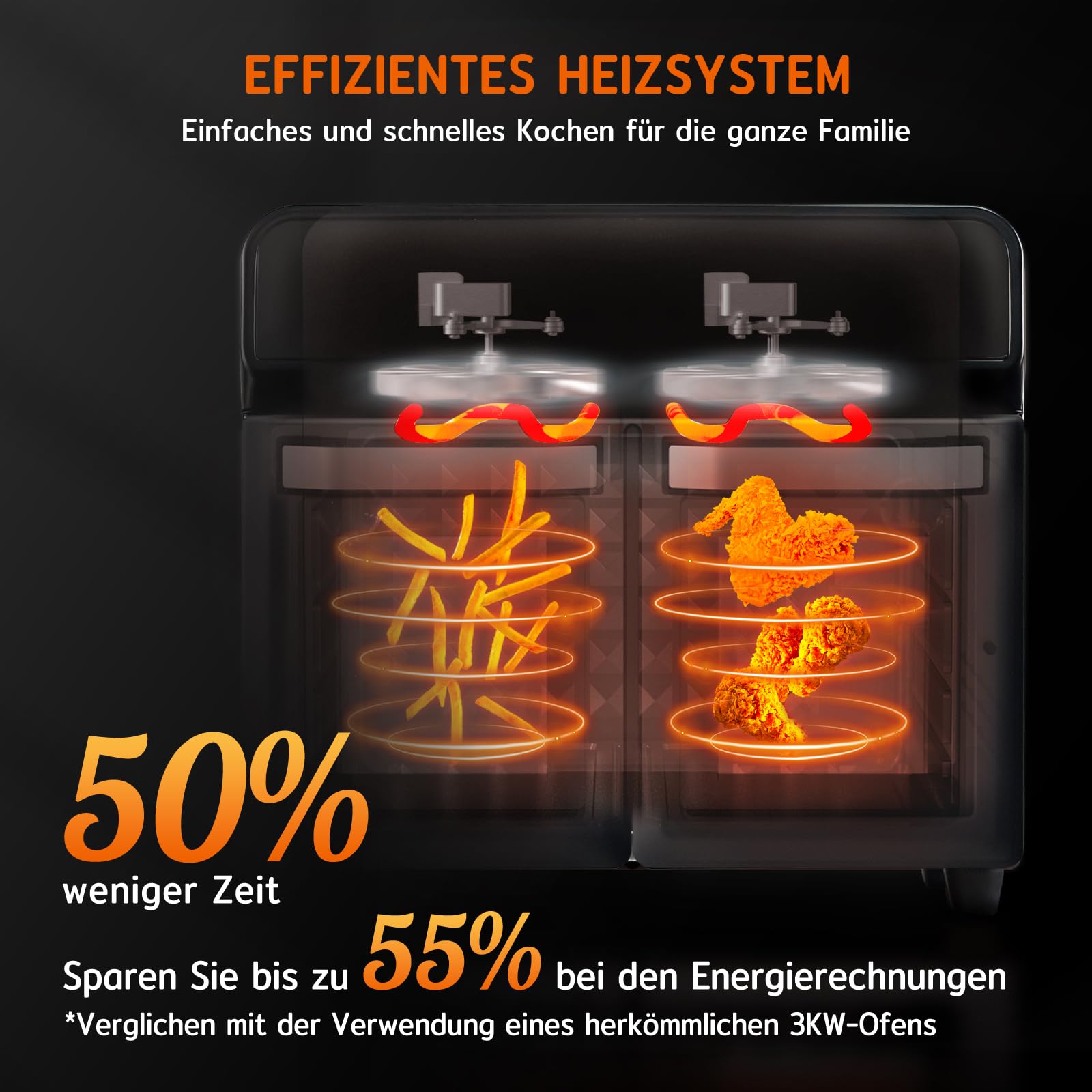 ✅ Technologia ogrzewania cyrkulacji: Technologia ogrzewania cyrkulacji 360 stopni nie jest konieczne otwieranie drzwiczek piekarnika do obracania jedzenia. Dzięki systemowi podwójnego wentylatora 2400 W piec na gorące powietrze zapewnia równomierne i szybkie ogrzewanie, wspomaga efektywność energetyczną i wydobywa więcej tłuszczu z jed