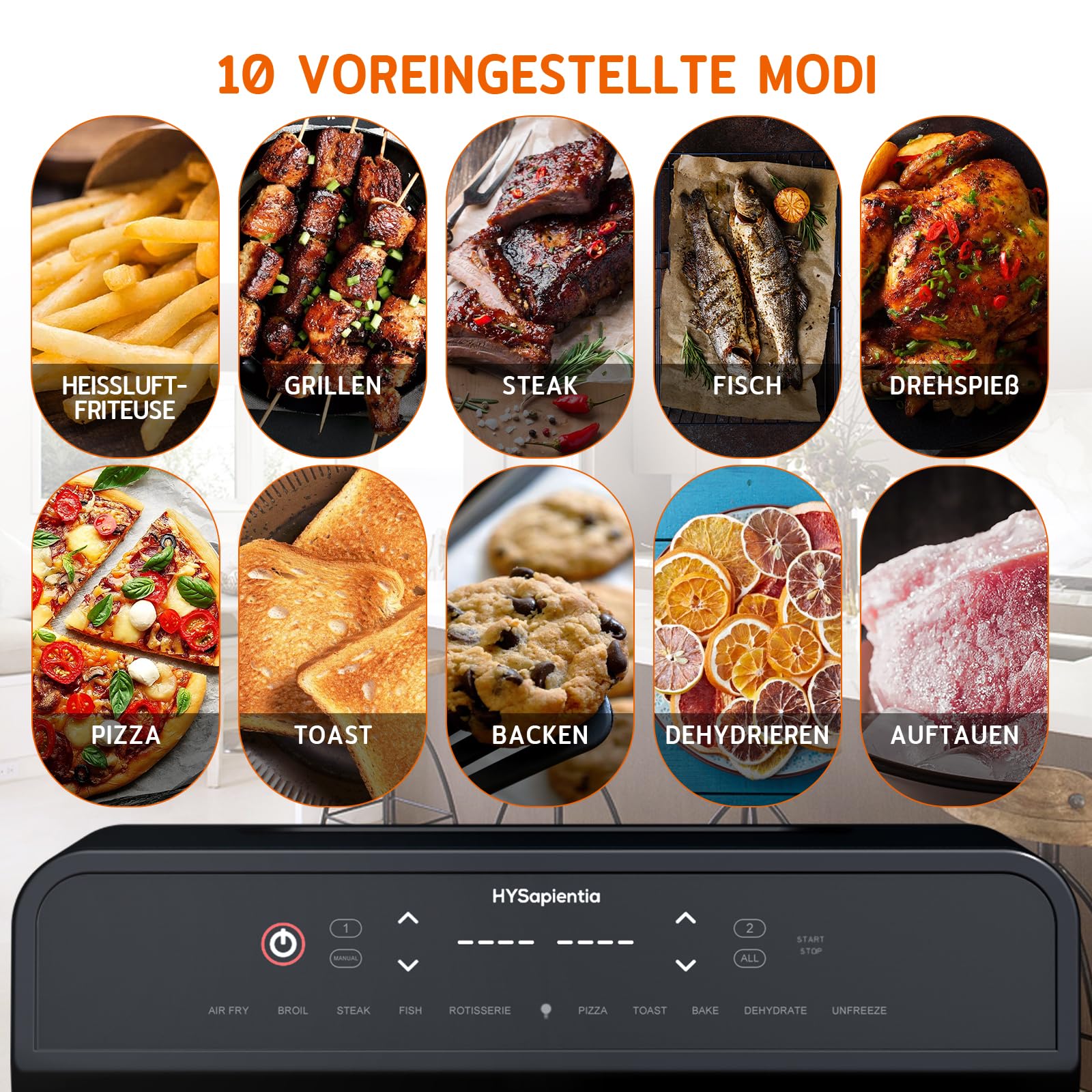 ✅ Wszechstronne gotowanie z: Wszechstronne gotowanie z 10 wstępnie ustawionymi trybami – łączy funkcje piekarnika z smażeniem na powietrzu. 10 wstępnie ustawionych trybów, takich jak smażenie na powietrzu, grillowanie, steki, ryby, rożen obrotowy, pizza, opiekanie, pieczenie, odwodnienie i rozmrażanie oraz możliwość dostosowani