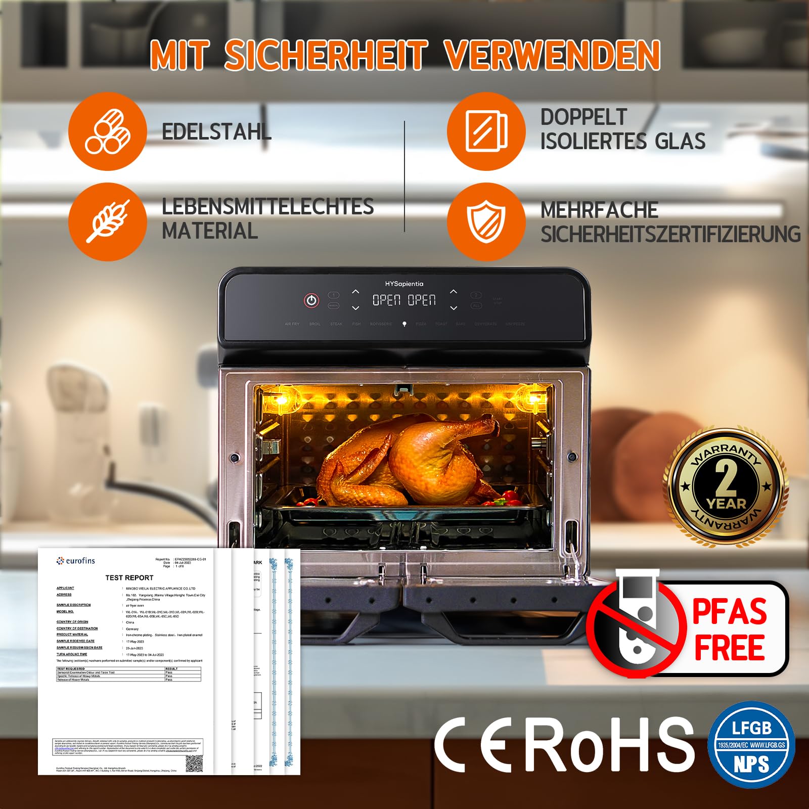 ✅ Bezpieczne materiały i: Bezpieczne materiały i nowoczesne wzornictwo. Wyprodukowano ze stali nierdzewnej we wnętrzu, urządzenie zmniejsza obawy o komponenty z tworzywa sztucznego. Wyposażony w inteligentne dotykowe elementy sterujące i duże okienko, jasne światło piekarnika zapewnia wyraźny widok postępów i statusu Twoich