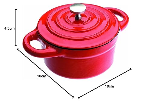 Ibili Mini garnek żeliwny, okrągły, czerwony, 10 x 4,5 cm, odpowiedni do płyt indukcyjnych