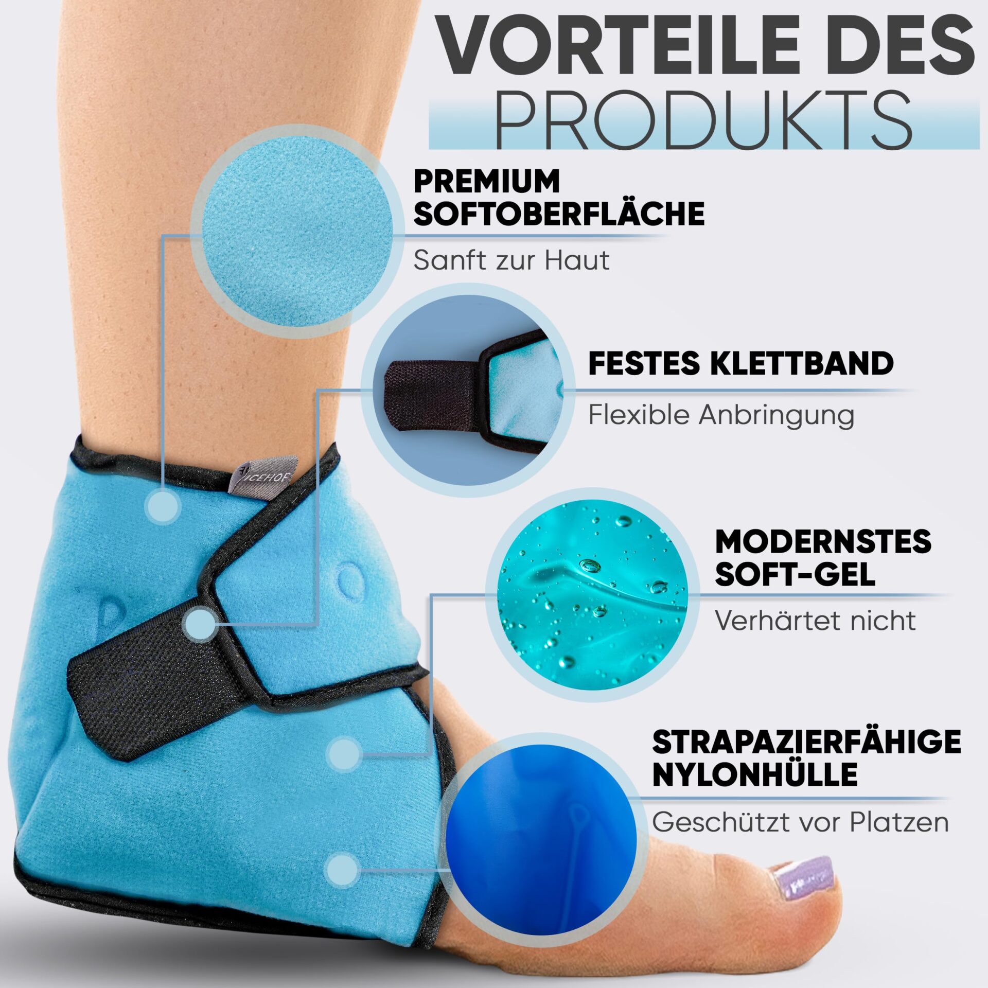 1. **Skuteczność terapeutyczna**: Żel chłodzący w podkładkach Icehof został zaprojektowany tak, aby szybko i efektywnie obniżać temperaturę w obszarze stawu skokowego, co przyczynia się do zmniejszenia bólu i stanu zapalnego.