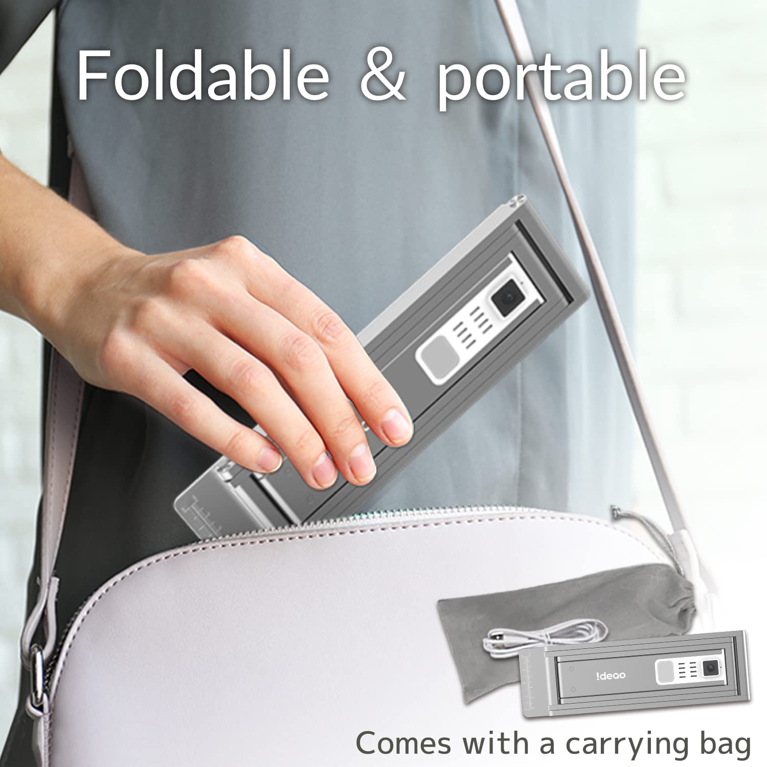 DC400 jest również niezwykle przenośna. Waży zaledwie 380 g i można ją całkowicie złożyć do 1,2 cm grubości, co sprawia, że jest poręczna jak smartfon. W zestawie znajduje się również torba podróżna, dzięki czemu można ją łatwo nosić ze sobą. Mimo swojej kompaktowej konstrukcji, kamera jest stabilna i wyważona, nawet gdy ramię jest całkowicie wysunięte. Dzięki temu DC400 jest niezawodnym gadżetem do użytku domowego, w pracy, w szkole czy w podróży.