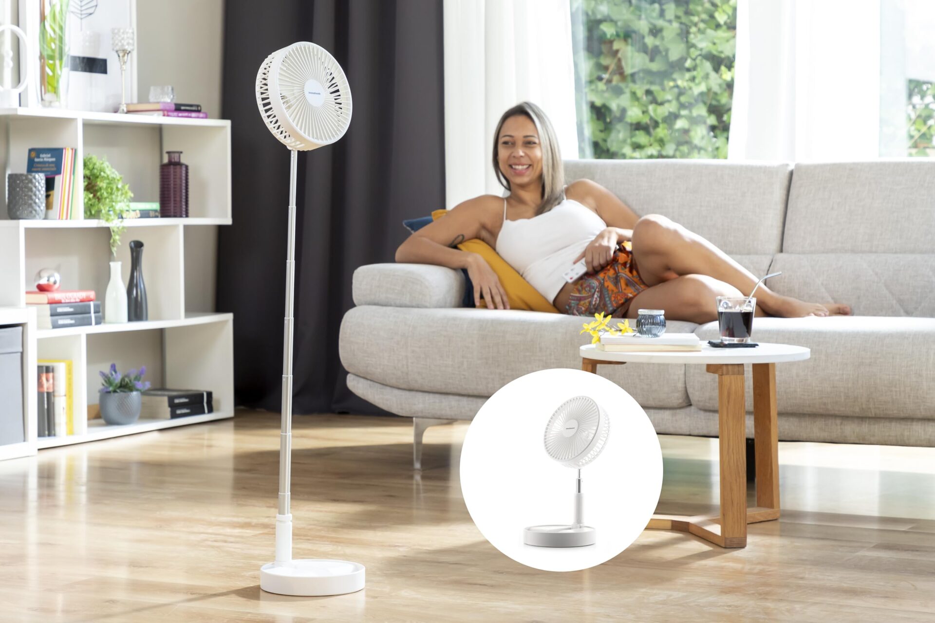 **3. Składana konstrukcja:** Dzięki składanej budowie, wentylator jest niezwykle poręczny i łatwy do transportu. Można go z łatwością schować do torby lub plecaka, co czyni go idealnym towarzyszem podróży.